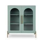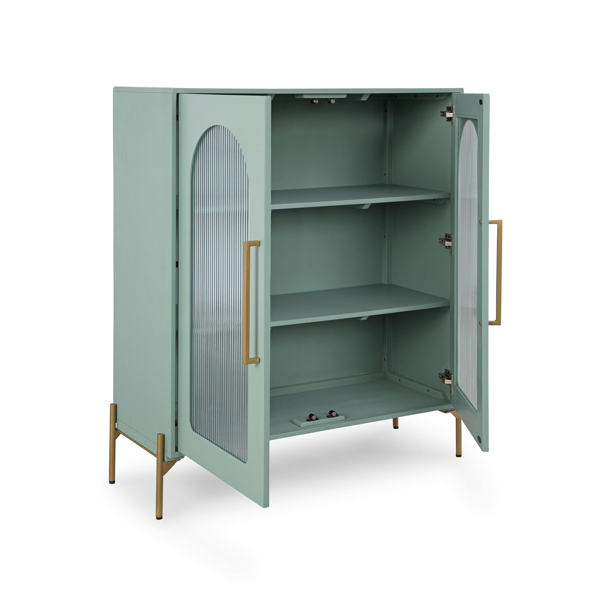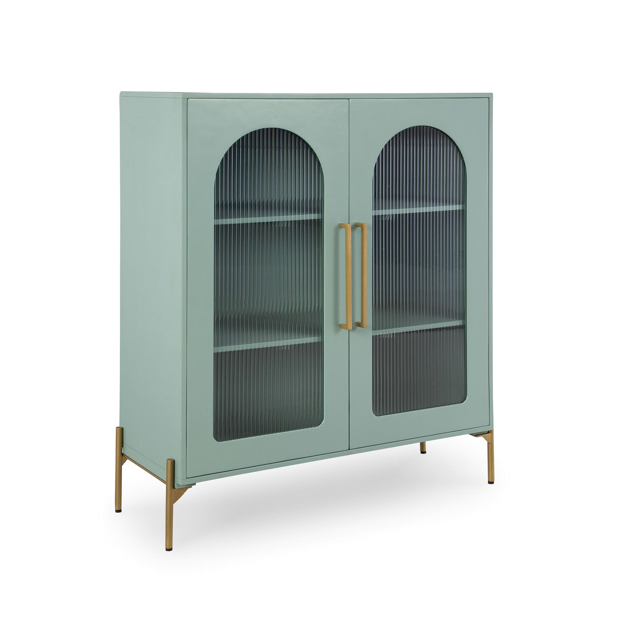Clearly a stunning statement piece for lovers of contemporary design, this sleek accent cabinet wows on many levels. Magnificent arched fluted glass door panels and goldtone metal hardware exude serious modern flair. And how about that fresh green finish? Two shelves add practicality to the cabinet's striking style.