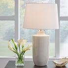 Serve up a simply stunning take on traditional style. The crackled glazed ceramic base of this table lamp is smooth to the touch yet full of visual texture. No need to sacrifice beauty for functionality here—it captivates while also providing light for reading or relaxation time.