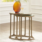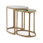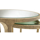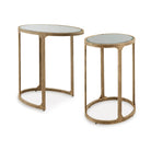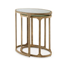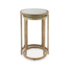 Looking to add a touch of traditional style to your space? You’ll delight in the classic appeal of this accent table set. Mirrored tabletops, supported by antiqued goldtone bases, bring light, dimension and glam character. A nesting design allows you to stage the tables solo or tuck them neatly together.