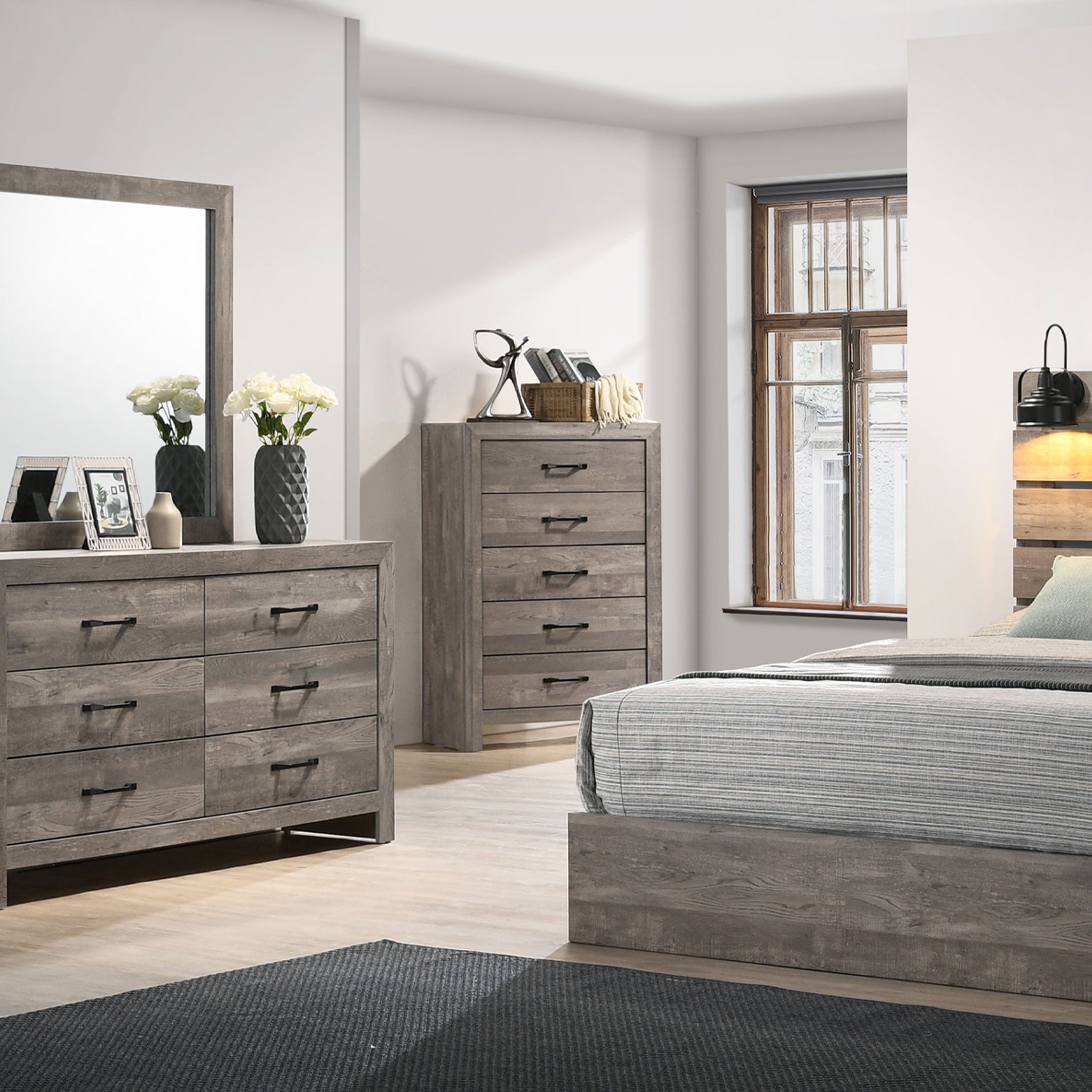 Bring farmhouse charm and practical storage to your bedroom with the Morris Chest in Driftwood Grey. Designed to coordinate with the Morris Bedroom Set, this chest features a modern shiplap-inspired design and a durable finish that complements any space, with spacious drawers crafted for easy organization. Whether as a standalone accent or part of the full Morris collection, this chest combines style and functionality seamlessly.