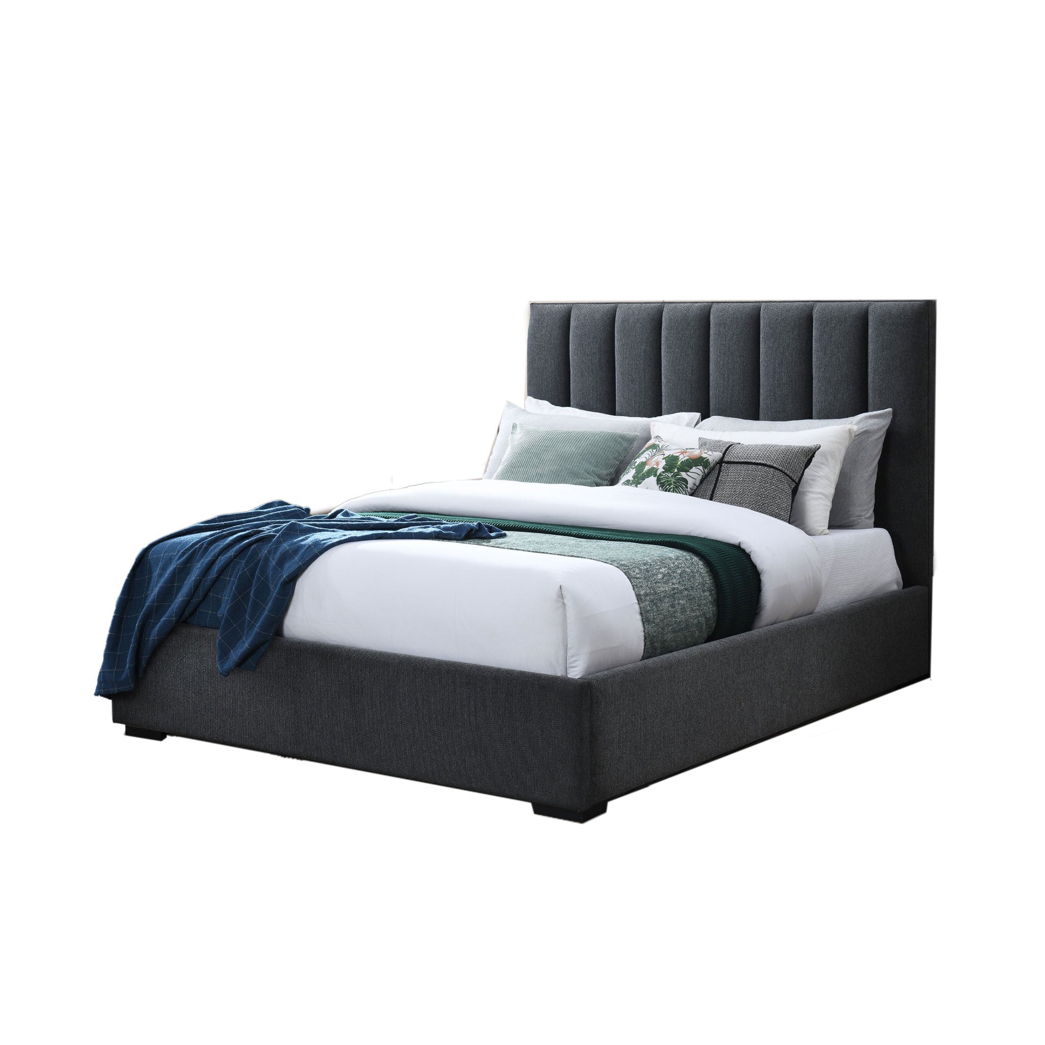 Modern, sleek, and supremely comfortable, the Felix bed features soft grey upholstery on a clean lined platform frame. Its plush headboard and footboard create a cozy backdrop for pillows and bedding, while the sturdy platform design eliminates the need for a box spring. A stylish, functional centerpiece for any bedroom.