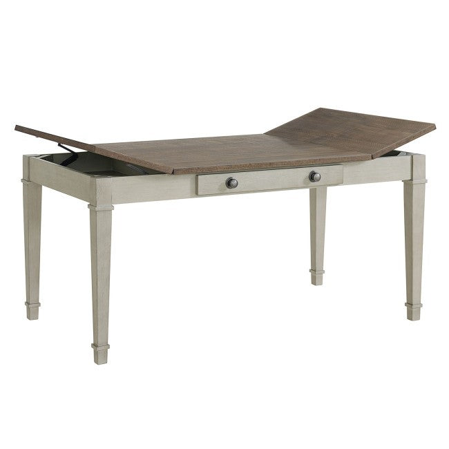 Rustic charm meets modern function in the Farmington Dining Set. Featuring a warm two-tone Medium Brown and Washed Stone finish, this 5-piece set includes a spacious table with lift-up compartments and felt-lined drawers—perfect for storing dining essentials.