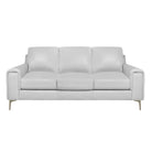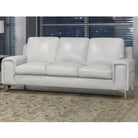 The Plaza sofa is 100% leather and has stylish metal legs that are the perfect addition to any modern living room. The sleek design of the metal complements the soft and supple grey leather, creating a comfortable and contemporary seating option.