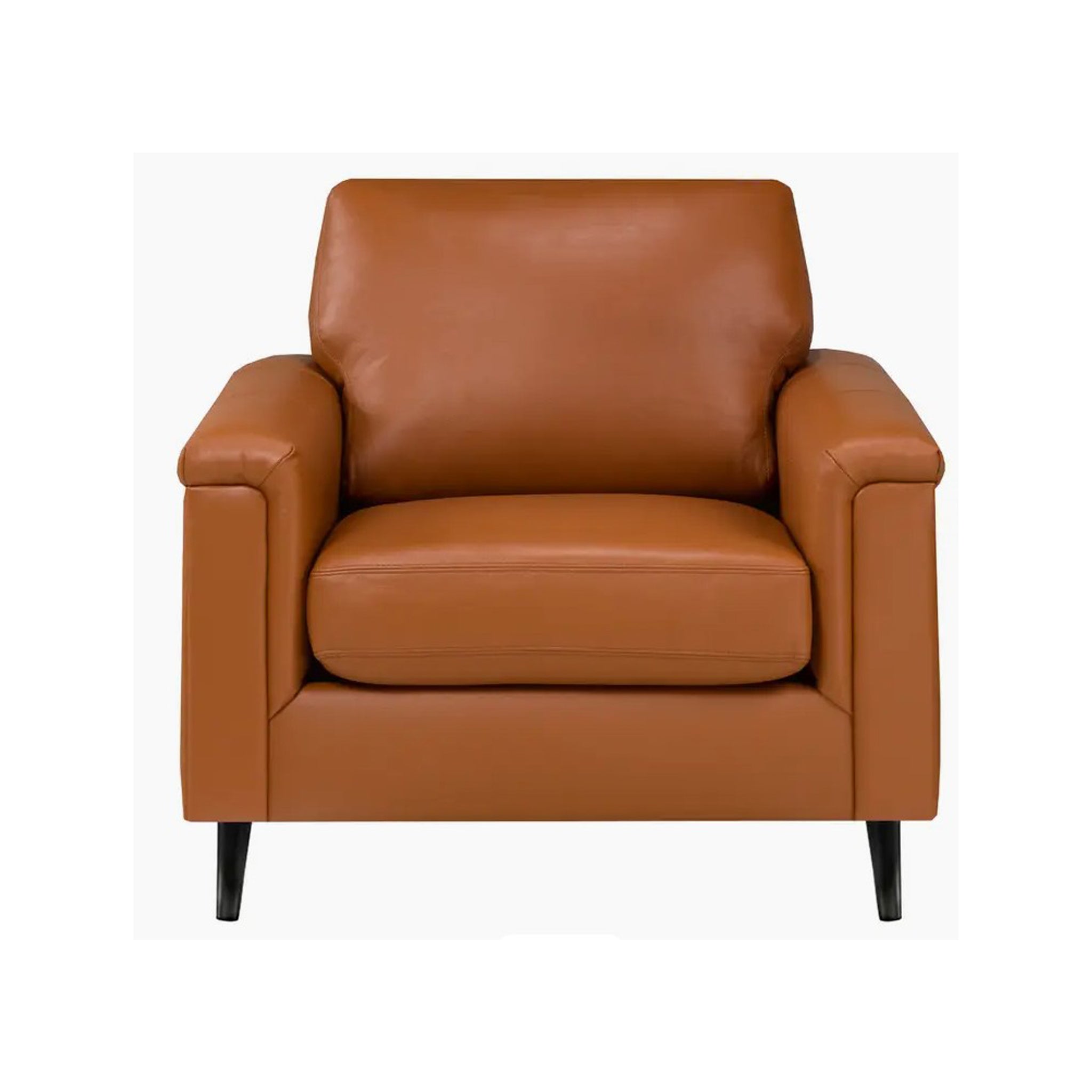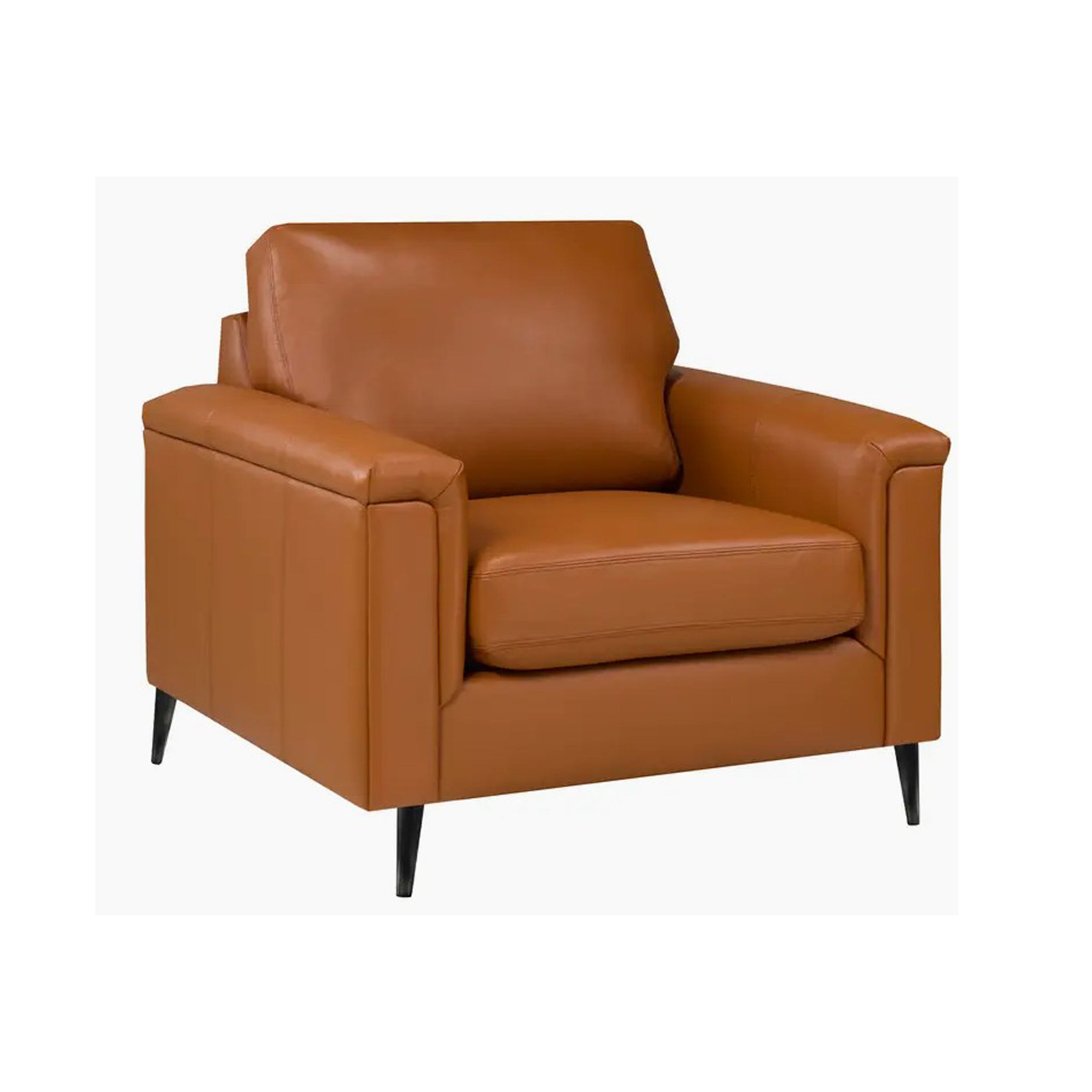 The Roswell leather match chair, meticulously crafted in Canada, seamlessly combines comfort and sophistication, making it a seamless addition to modern or contemporary living spaces.