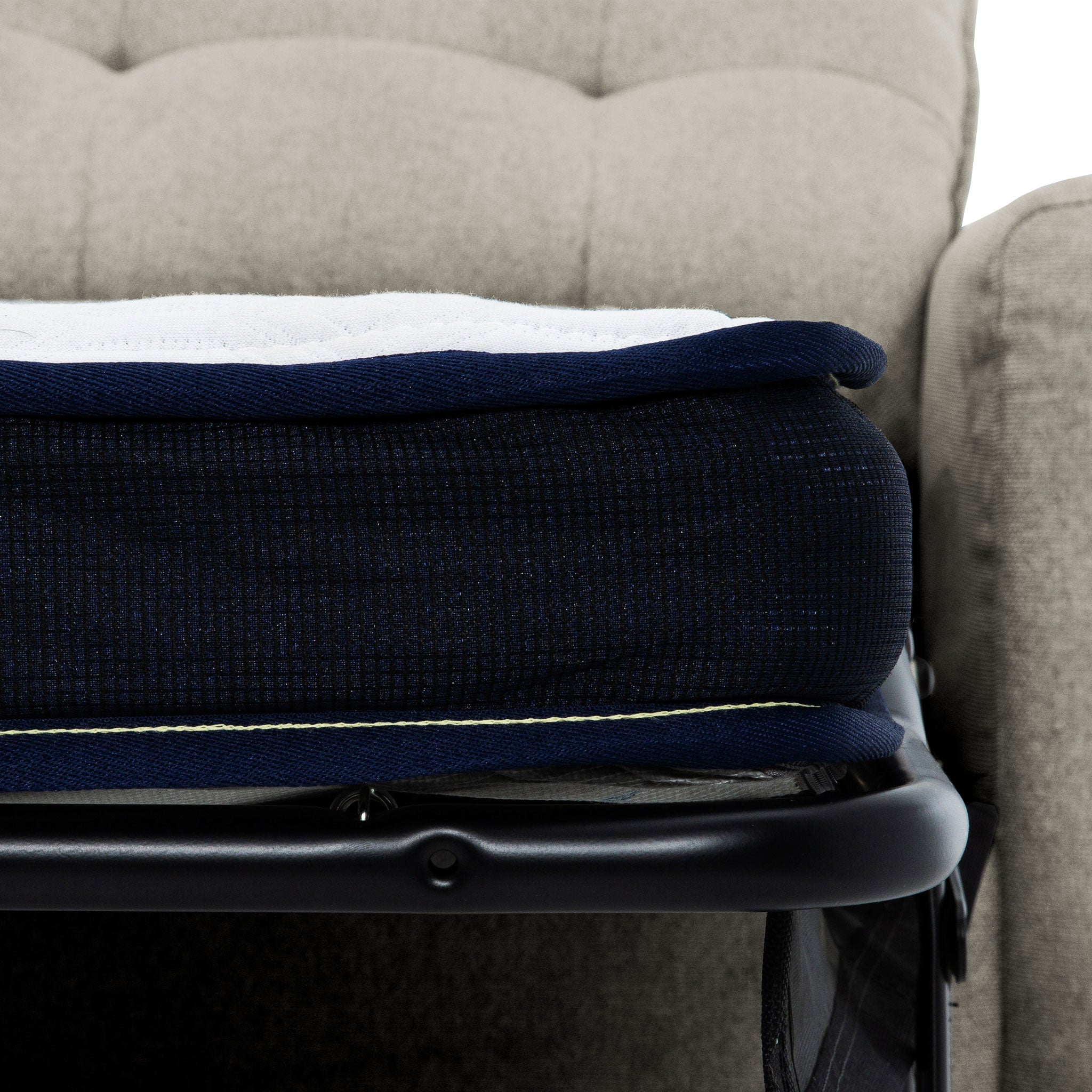 Modern style meets everyday comfort with the Carlin Sofa Bed. Upholstered in soft Brooklyn Cement fabric, this versatile piece easily transforms from a sofa to a cozy Full-size Stearns & Foster bed.