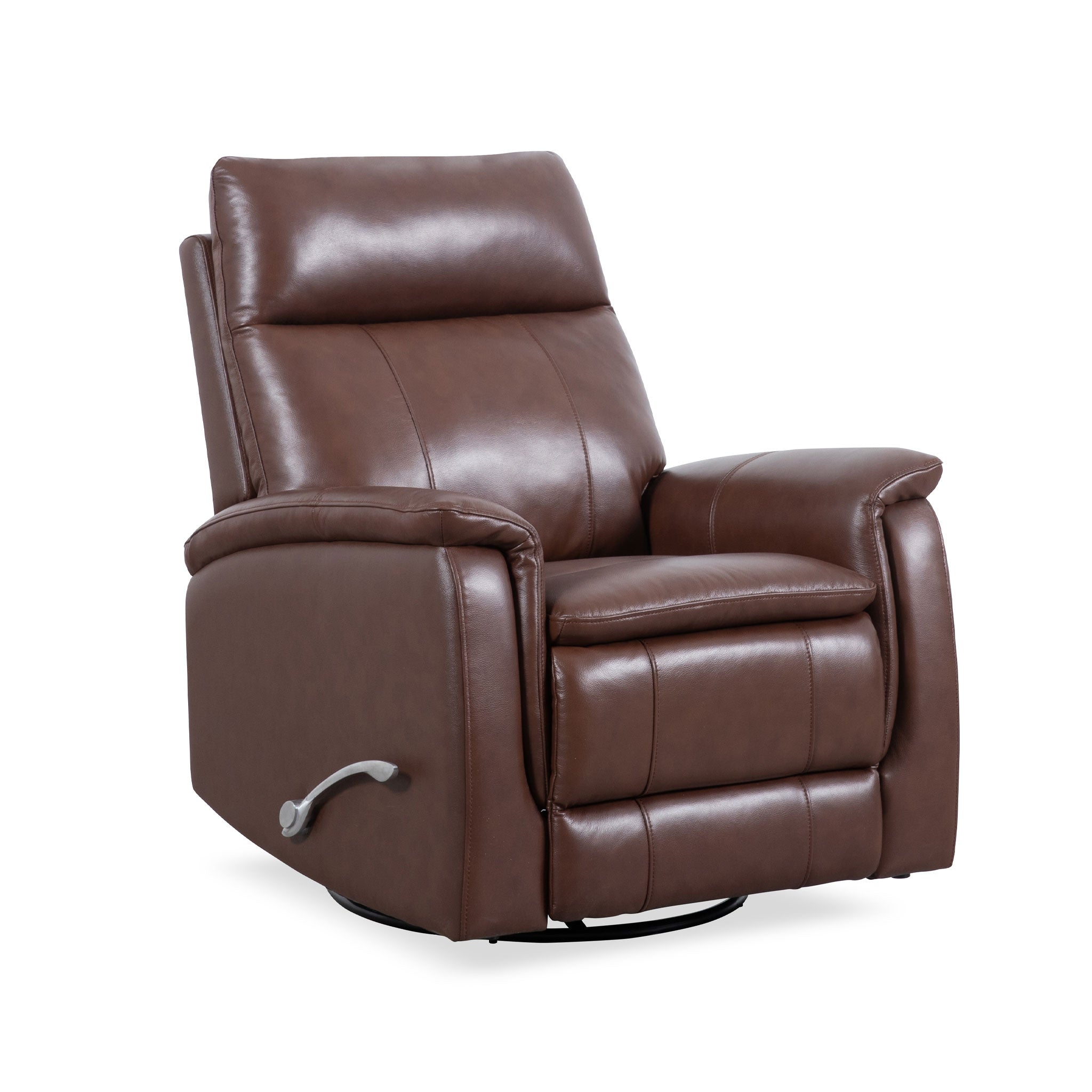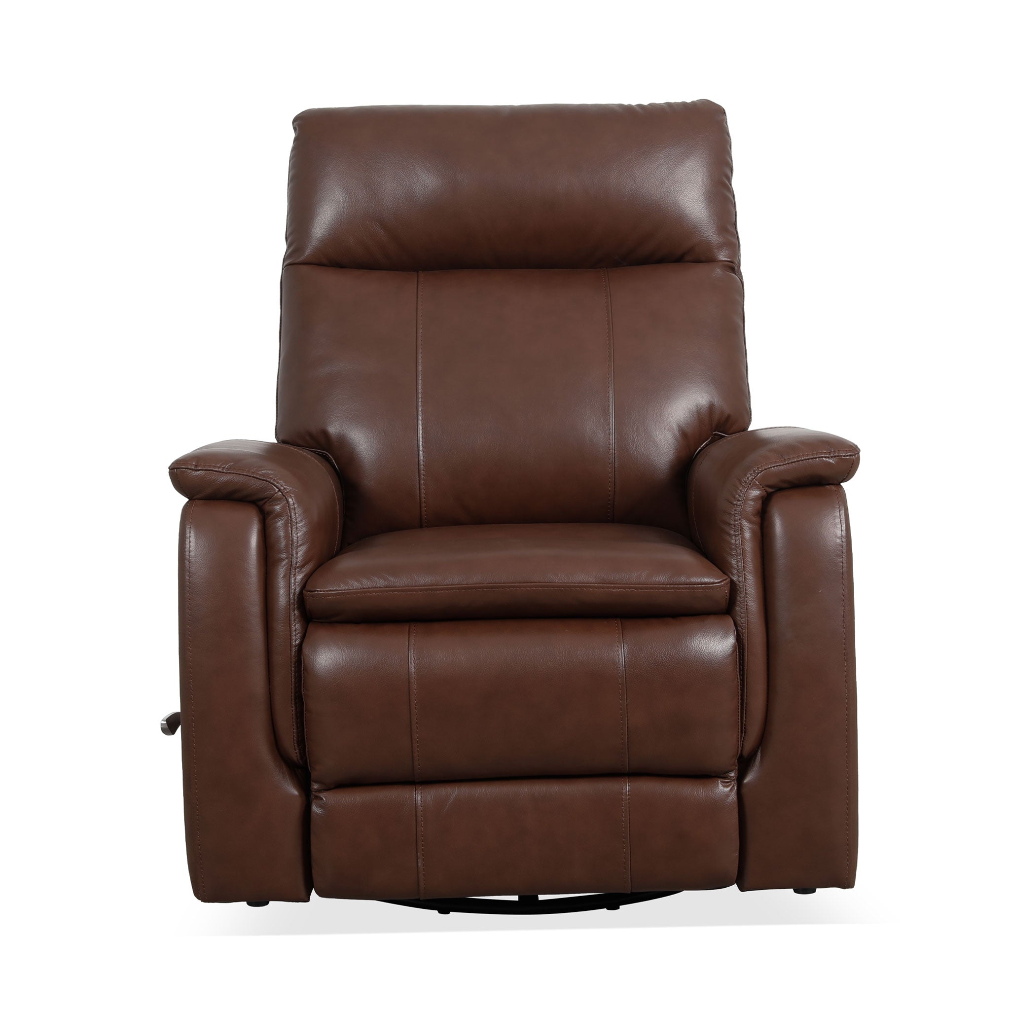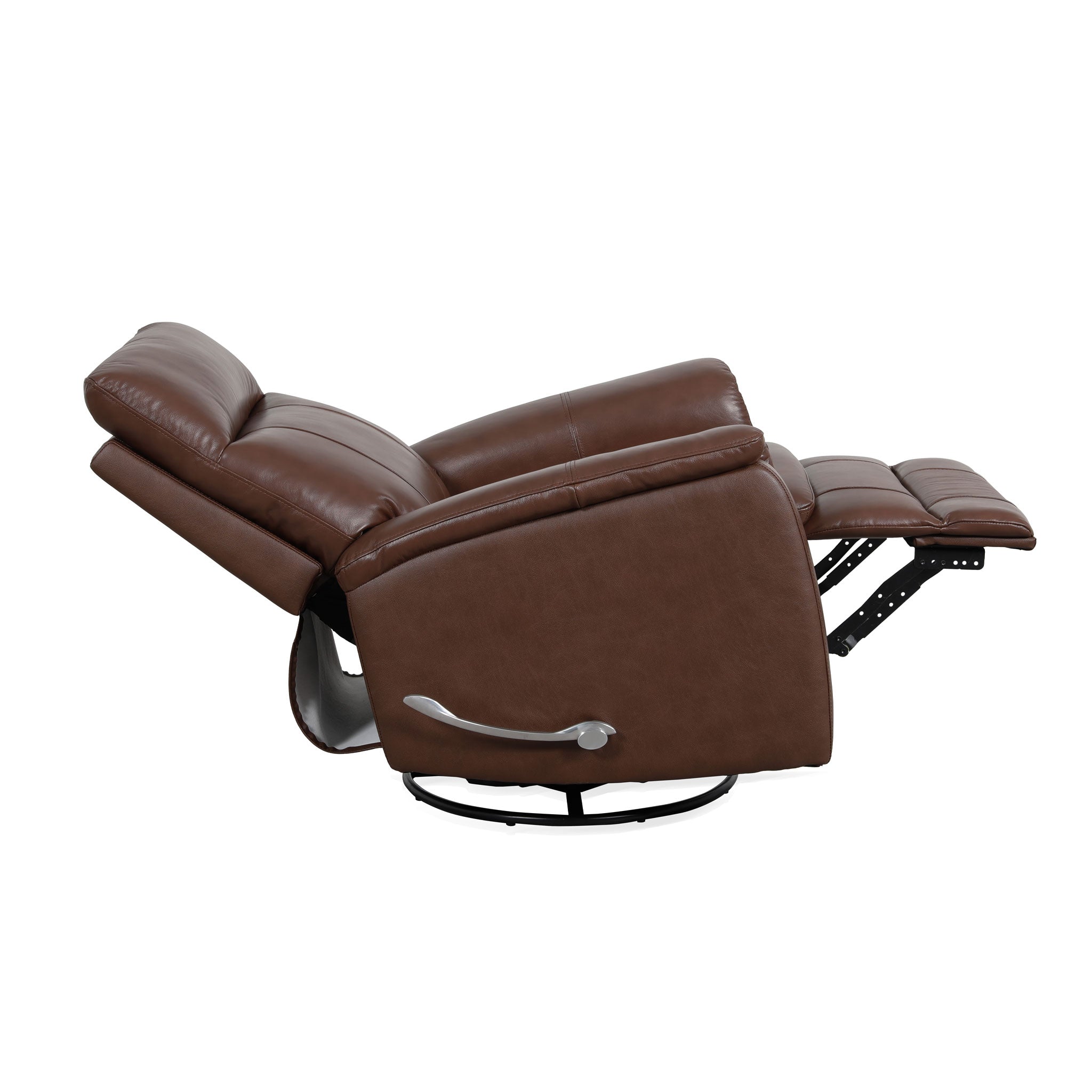 The Indiana Recliner combines comfort and style in a versatile design. Upholstered in brown leather with a plush headrest, it features a smooth swivel glider mechanism for easy movement. Available in Pecan, Granite, and Beach, it fits seamlessly into a variety of living spaces while providing a comfortable spot to relax.