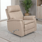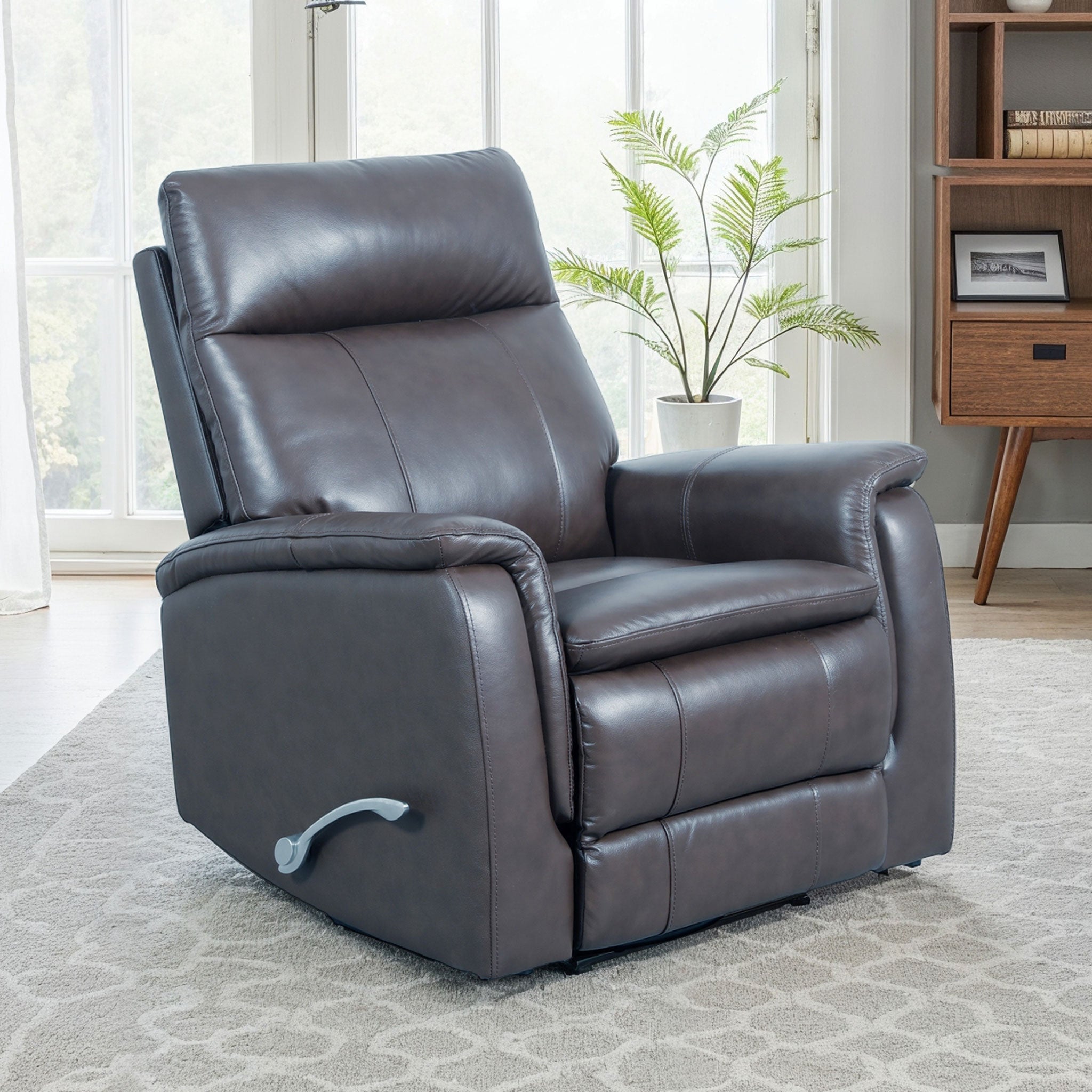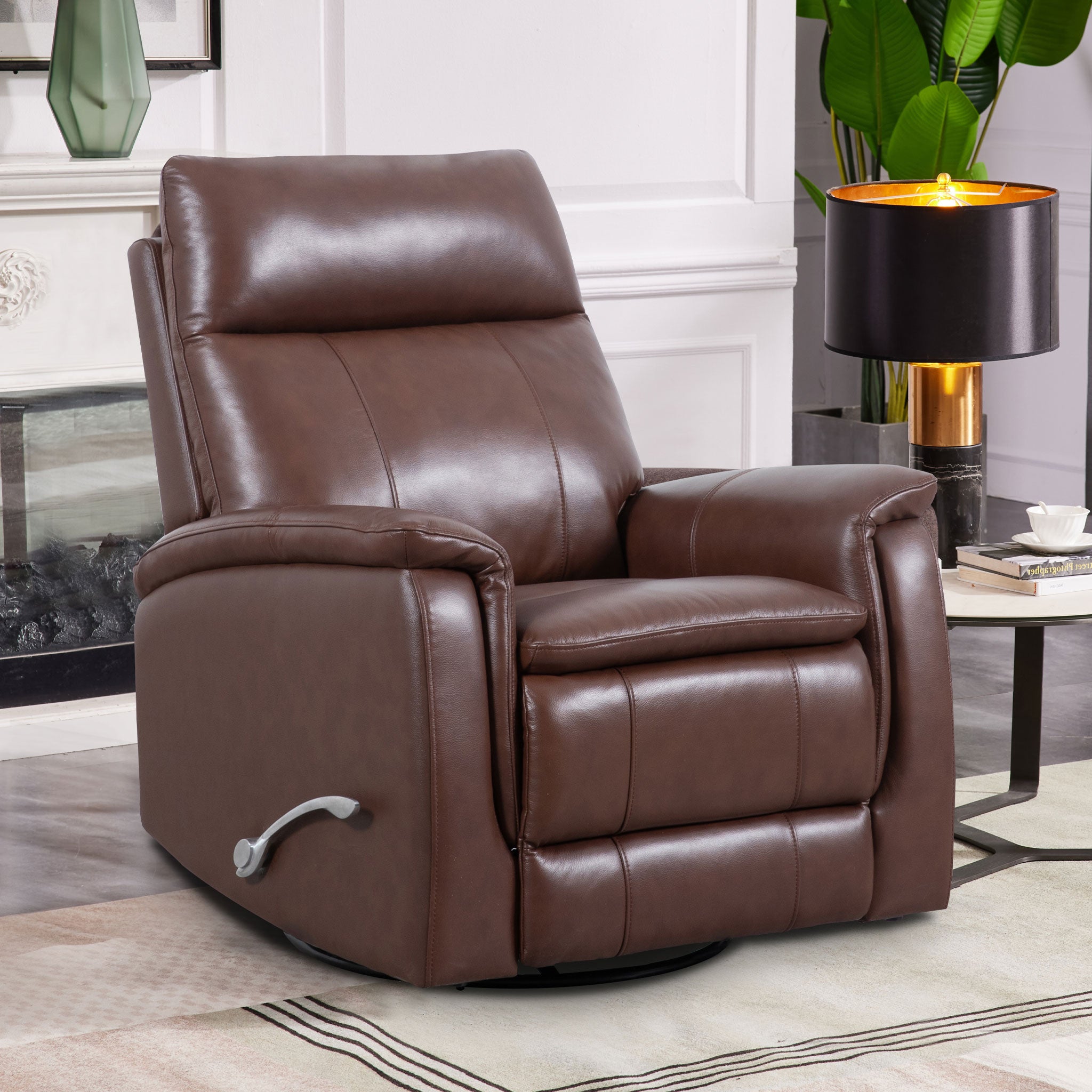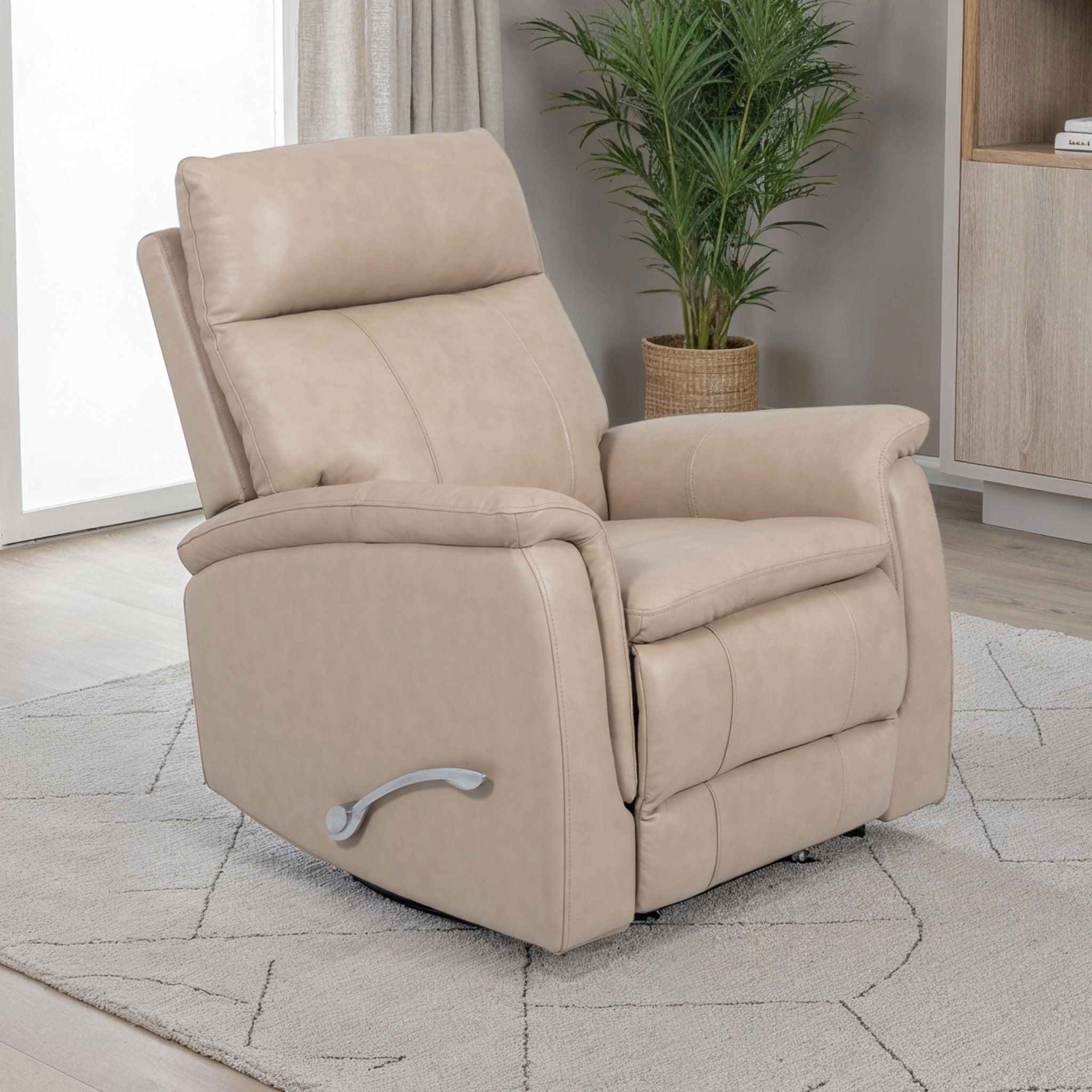 The Indiana Recliner combines comfort and style in a versatile design. Upholstered in brown leather with a plush headrest, it features a smooth swivel glider mechanism for easy movement. Available in Pecan, Granite, and Beach, it fits seamlessly into a variety of living spaces while providing a comfortable spot to relax.