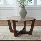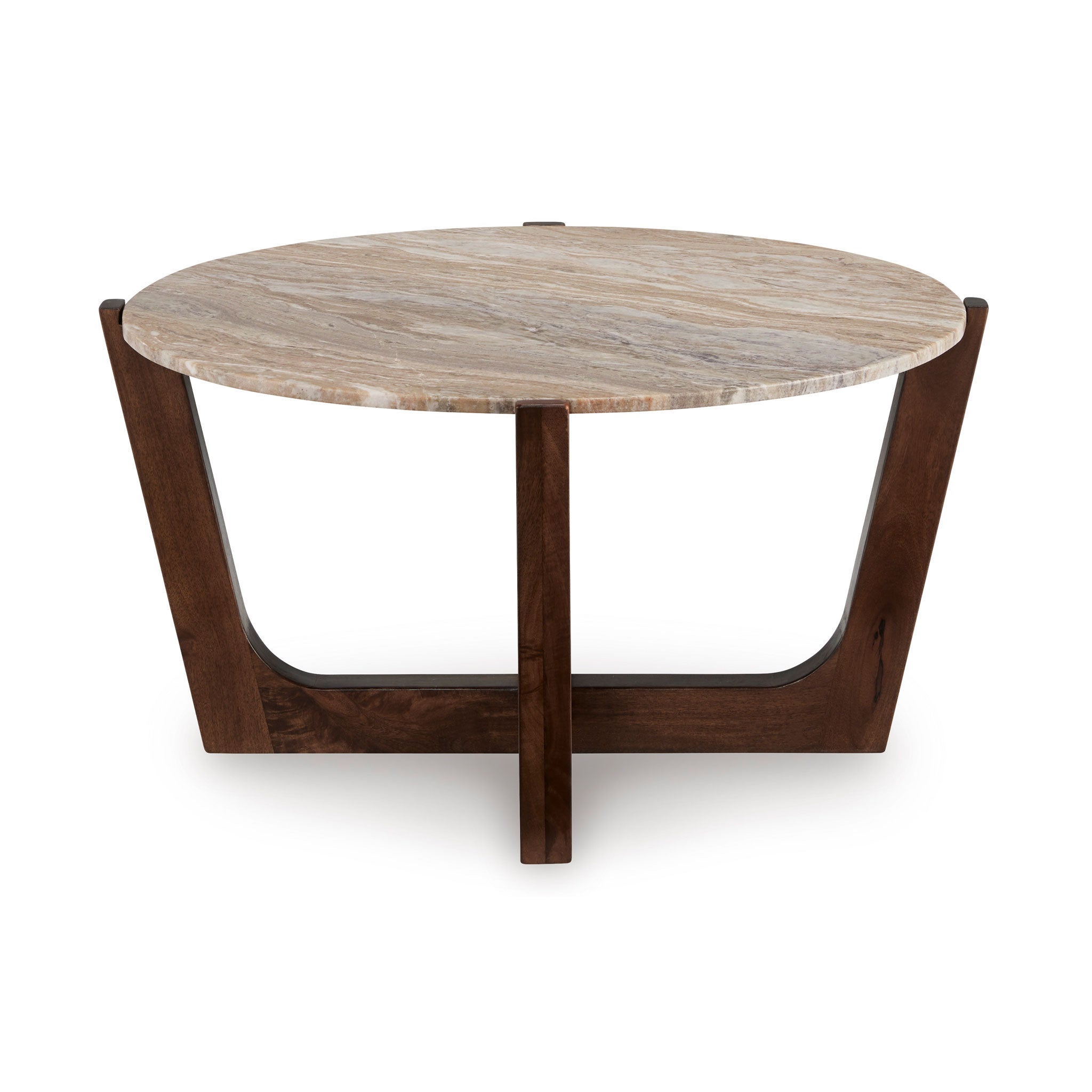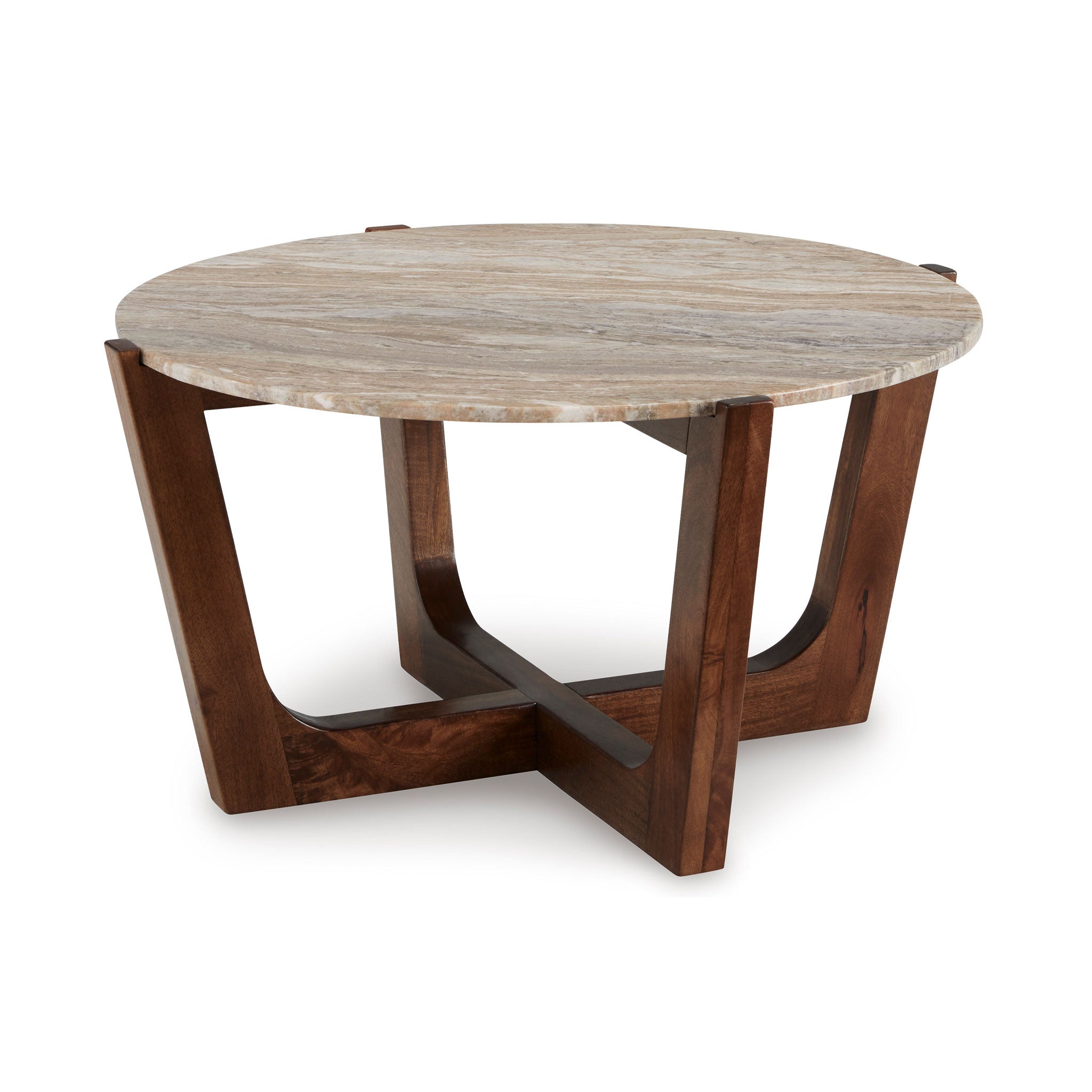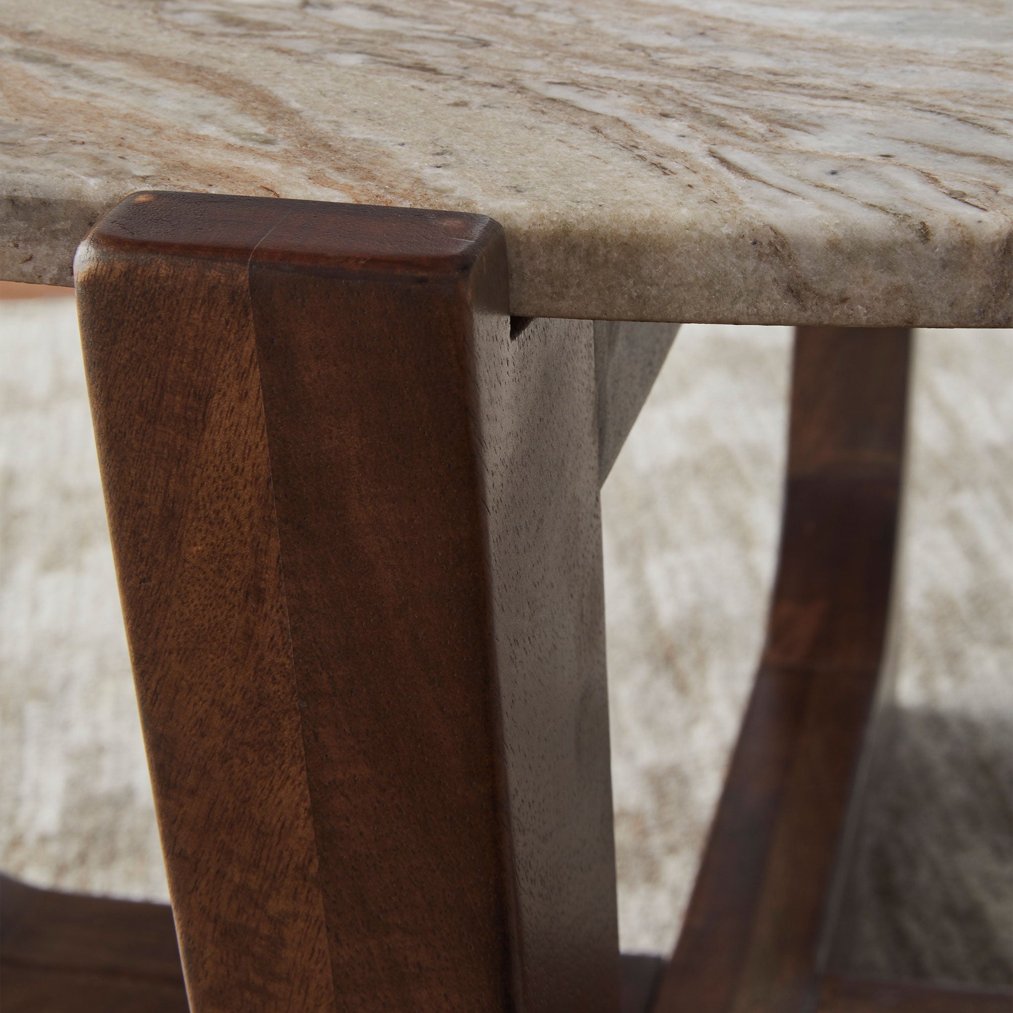 Not only does the stunning Tanidore coffee table enhance the aesthetic of your home, but it also provides practicality and functionality. Crafted with a mango wood frame and natural marble top, its solid construction and durable materials ensure years of reliable use. It's the perfect blend of contemporary style and timeless elegance.