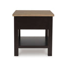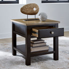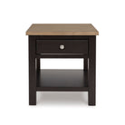 When you’re styling your living room, convenience is key. With this end table, casual flair meets can’t-miss function. Tired of tracking down lost remotes? A handy storage drawer keeps your entertainment essentials close. This fashionably functional piece pairs a dark chocolate brown with a light wood tone, complementing a variety of color palettes.