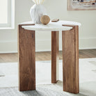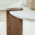 With its back-to-nature sensibility, this end table is a natural fit for outfitting your modern living area. Its clean-lined design lets the beautifully organic quality of the mango wood shine through, complemented by the sleek refinement of a marble top. This table is the ideal spot for decor, snacks and beverages.