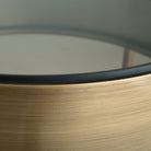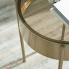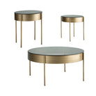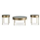 This table set combines metal and glass materials for a stylish and functional home accent. Tubular legs provide a sturdy base, while the aged brass-tone metal apron adds an elegant touch. A black tempered glass tabletop offers both sleek aesthetics and durability. With a modern design and high-quality craftsmanship, the set is a wonderful display of great taste.