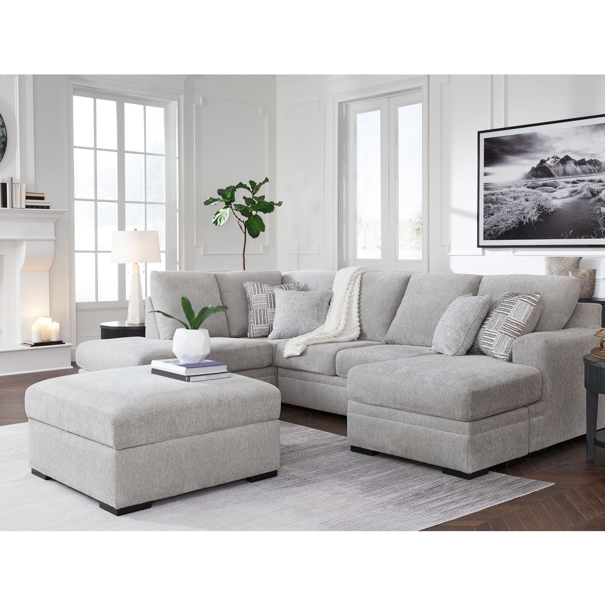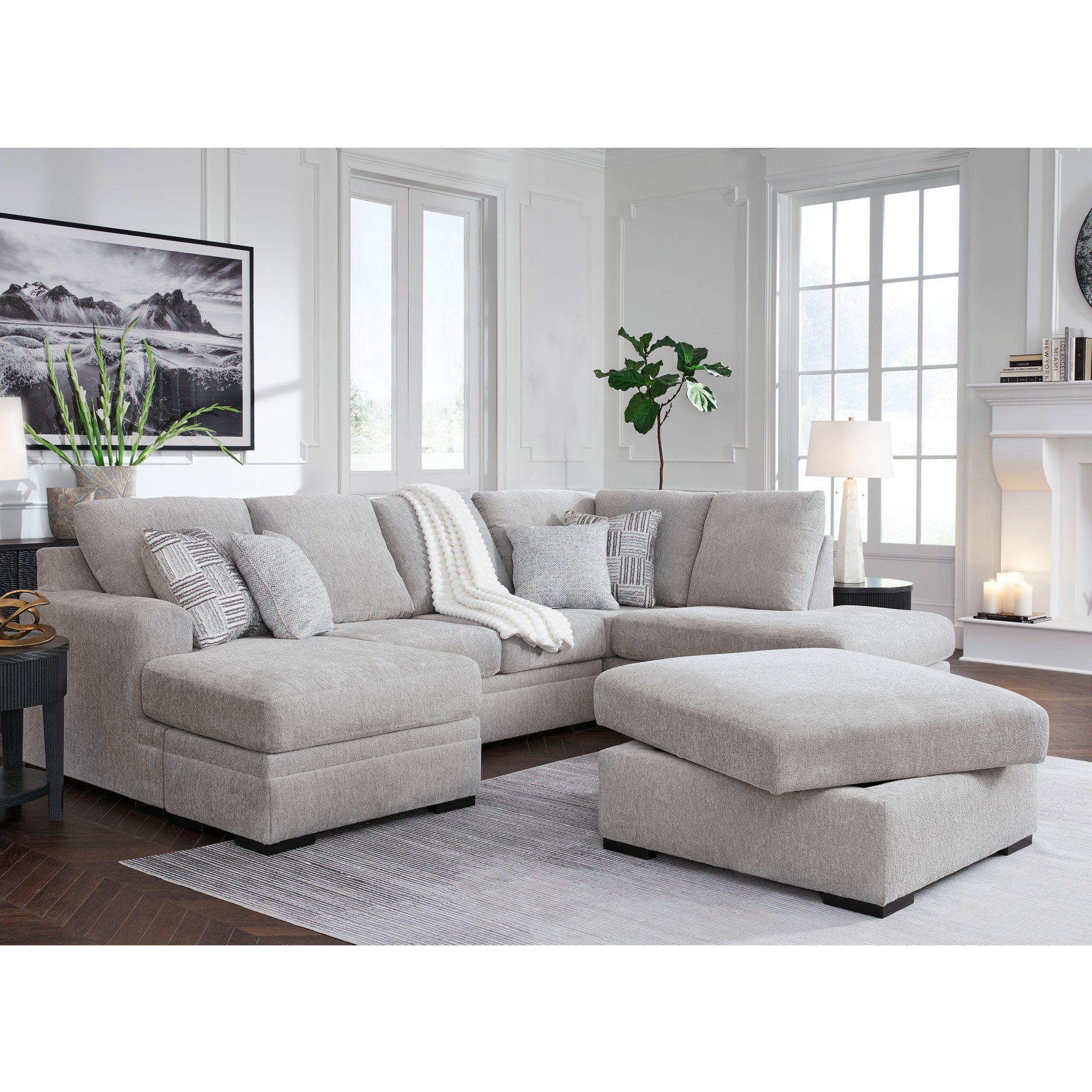 This ottoman's contemporary character and neutral hue make it a practical and stylish choice for high-traffic areas. Stressed about upkeep? No need to sweat spills and messes—the Next-Gen Nuvella™ performance fabric is soft and easy to clean, making it perfect for active households. This family-friendly ottoman is ideal for hosts with the most, providing easy-to-access storage that keeps essentials convenient but out of sight. Both durable and inviting, it's the only answer to a busy lifestyle.
