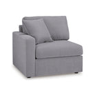 This left-arm facing corner chair is made with Next-Gen Nuvella™ (polyester) fade-resistant, washable fabric. Fully finished on all sides, it pairs with other items in the series to make a modular sectional.