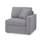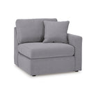 This right-arm facing corner chair is made with Next-Gen Nuvella™ (polyester) fade-resistant, washable fabric. Fully finished on all sides, it pairs with other items in the series to make a modular sectional.