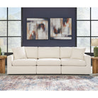 "Modmax" a true customizable modular sectional to fit any space. Featuring the Next-Gen Nuvella true performance fabric that offers high UV protection while being bleachable as well as cleanable. This is excellent for a high traffic areas. Loose reversible cushions, loose reversible back cushions with non-skid legs. All sides are completed (no connectors) so each piece can float anywhere in a room. Removable seat cushions, backs, and accent pillows with washable zippers for machine washing.