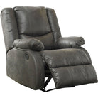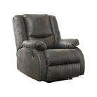 Make a big impression in a smaller footprint with this chicly styled zero wall recliner. Thanks to its space-conscious design that requires a mere three inches between the wall and chair back, you can stretch out more efficiently. Wrapped in a fabulous faux leather loaded with pebbly texture and tonal variation that looks so natural, this designer recliner sports contoured tufting and contrasting baseball stitching for a style home run.