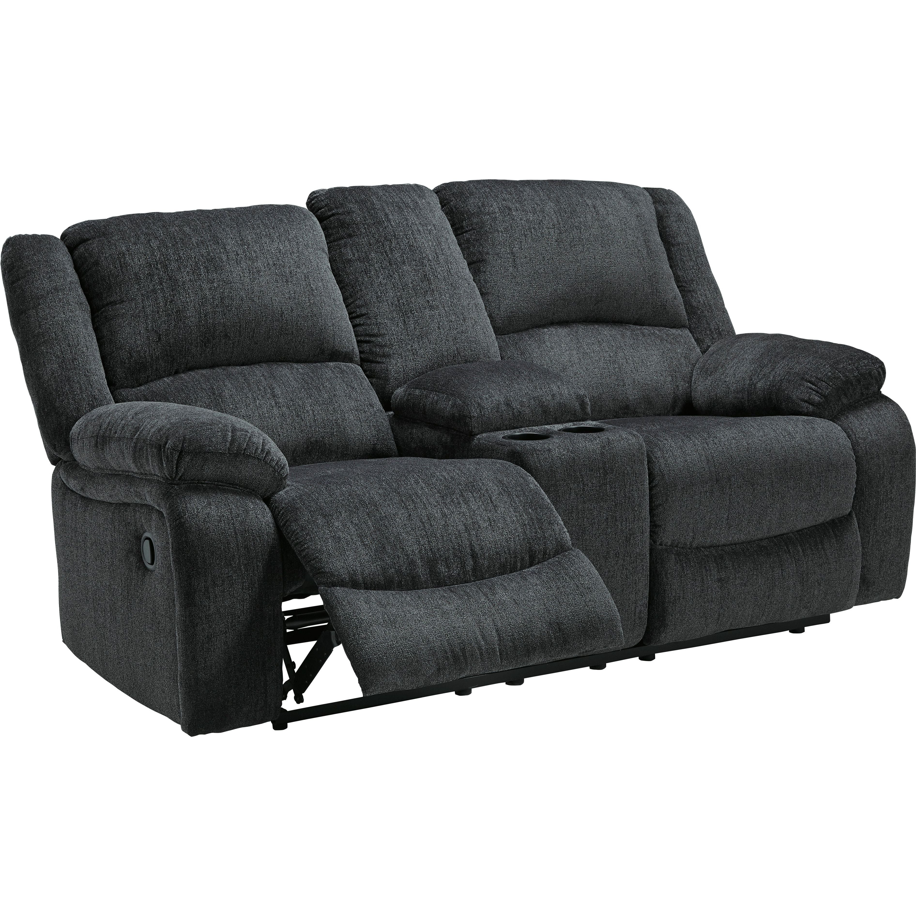 Built for luxury, this reclining loveseat with center console lets you kick back in reliable style. The thick, softly textured chenille upholstery provides a comfy surface on which to lounge. With bustle back construction and thickly cushioned armrests, this piece gives you the dependable support you need to unwind with the convenience of the center console to ease your evening.