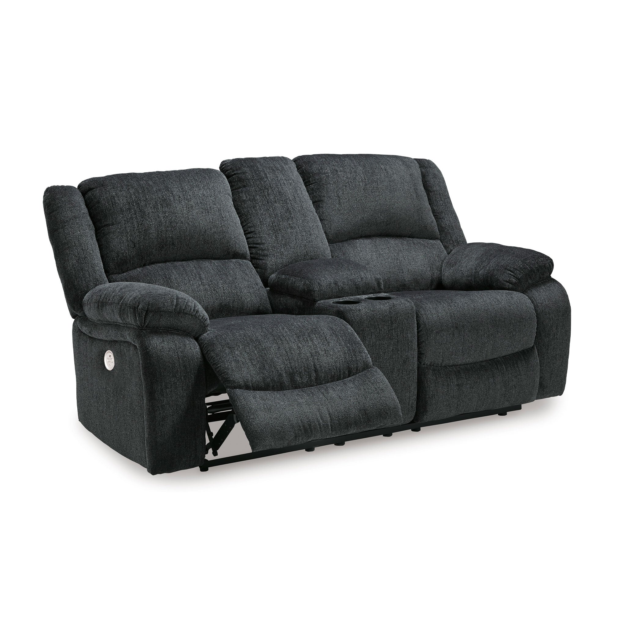 Built for luxury, this power reclining loveseat with center console lets you kick back in reliable style. The thick, softly textured chenille upholstery provides a comfy surface on which to lounge. With bustle back construction and thickly cushioned armrests, this piece gives you the dependable, powered support you need to unwind with the convenience of the center console to ease your evening.
