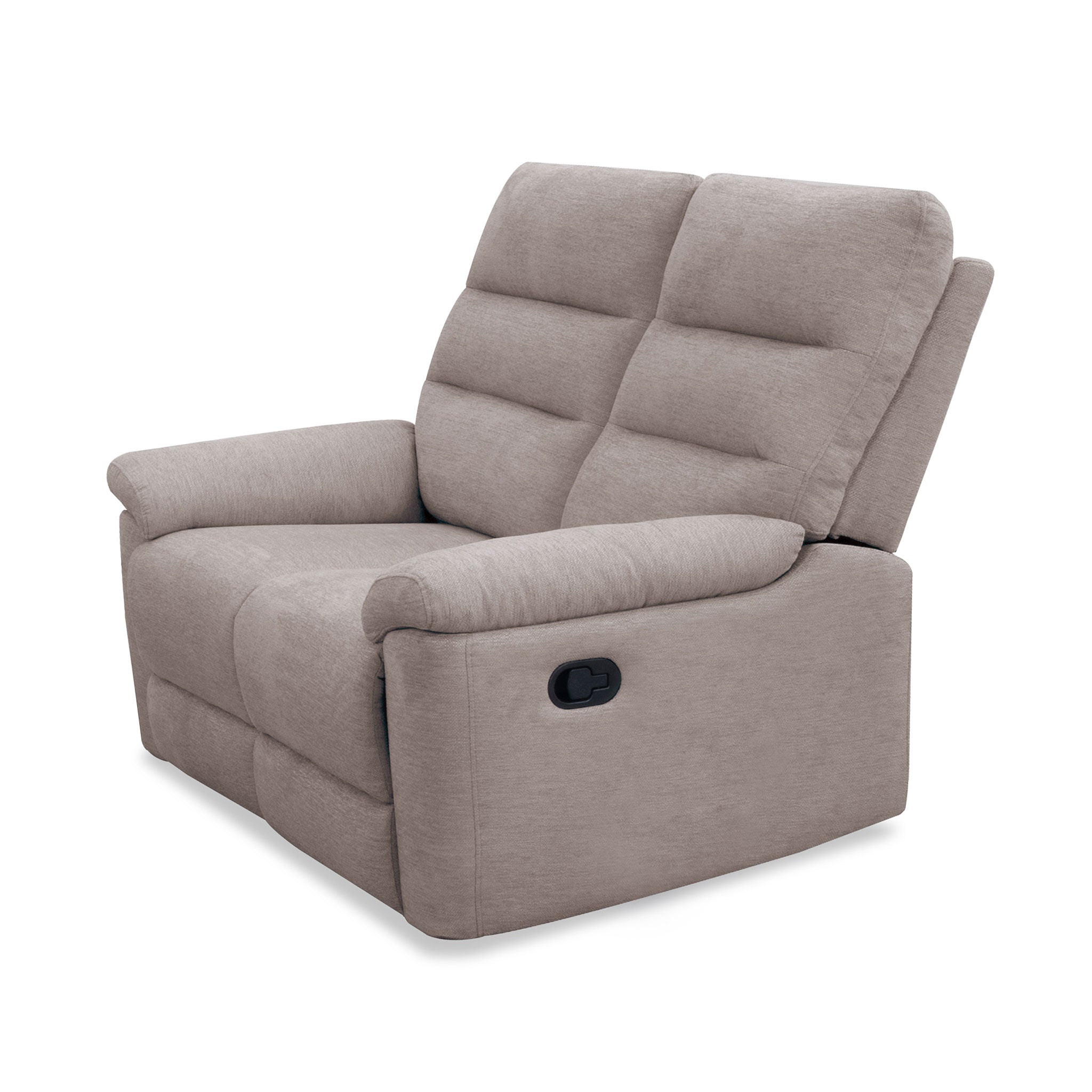 Sink into comfort with this plush reclining loveseat, designed for cozy evenings and laid-back lounging. Upholstered in a soft, neutral fabric, it features two spacious seats with manual recline, pillow-top arms, and channel-tufted backrests for added support. Whether you're reading, relaxing, or watching your favorite show, this loveseat delivers the perfect balance of comfort and function.