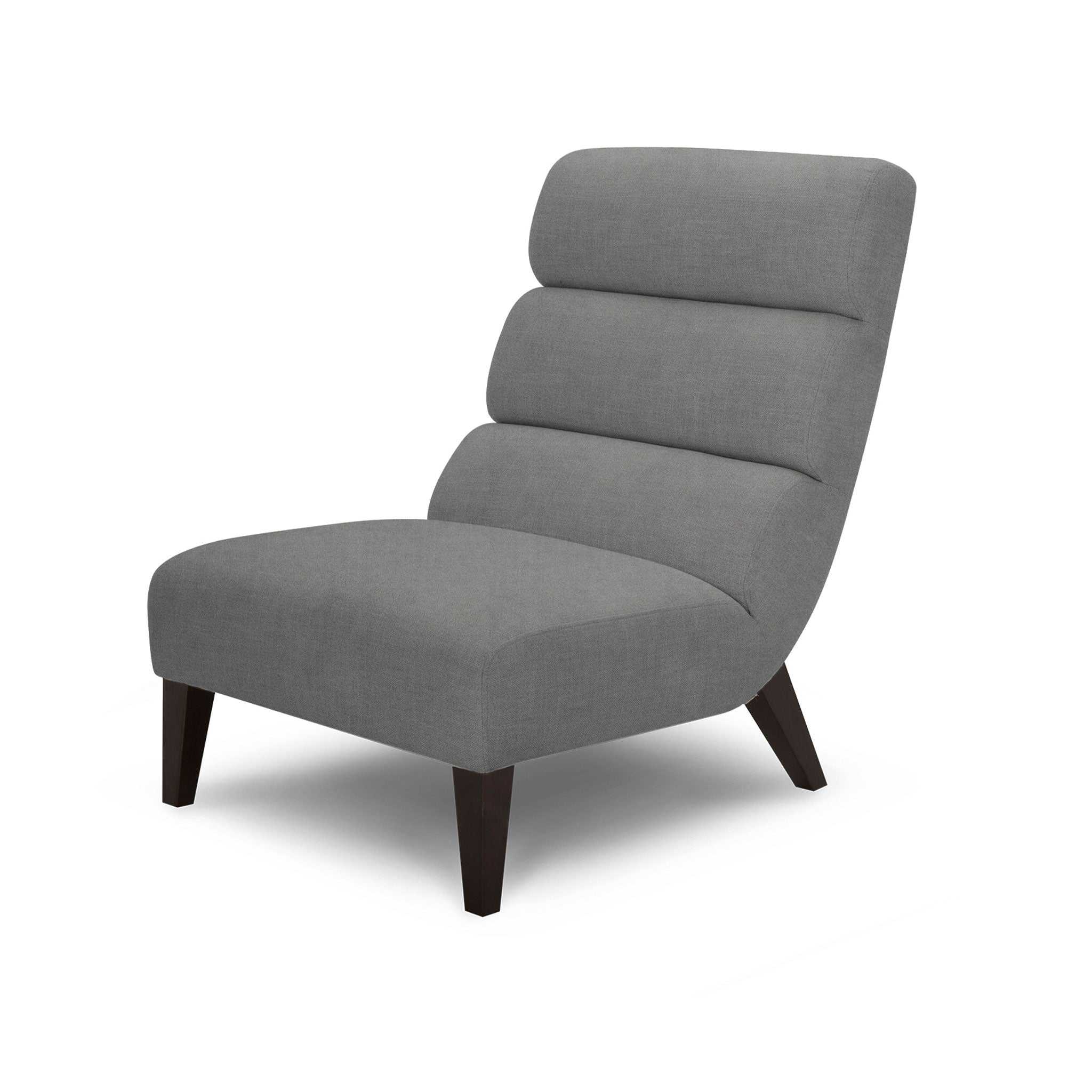 The Alex Chair is a sleek and modern gray chair with elegantly crafted walnut wood legs. The chair's neutral gray color adds a touch of sophistication to any space, while the dark wood legs provide a contrasting element that enhances its overall aesthetic appeal.