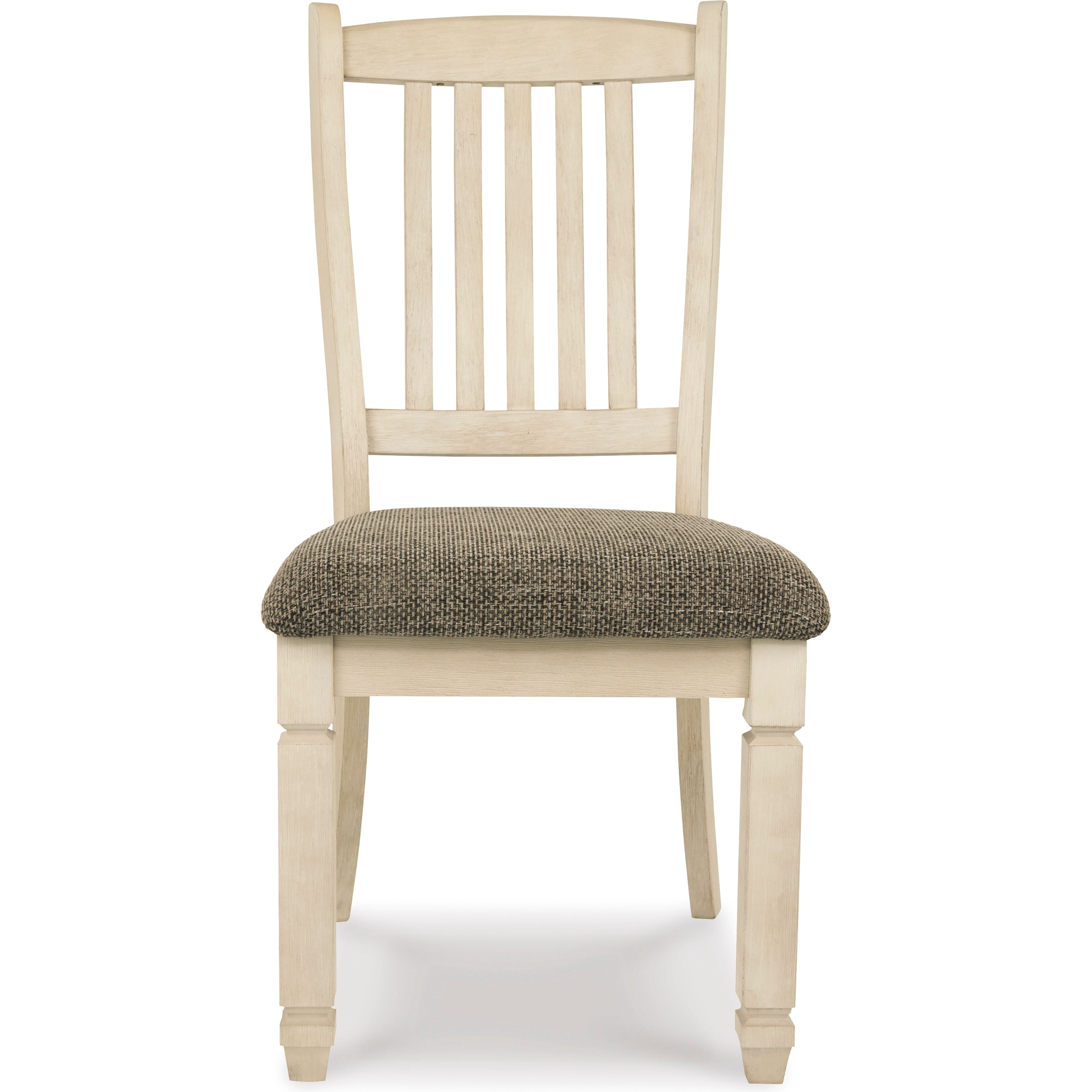 The beauty of this upholstered dining chair is something to savor. Designed to serve up comfort and flair, this rake-back dining chair entices with a cushioned seat covered in a heavy woven fabric that complements the chair’s antiqued white finish.