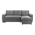 The Bradley Media Sleeper Sofa is your all-in-one solution for lounging, hosting, and smart storage. Upholstered in versatile grey fabric, this contemporary sofa features a pullout bed for overnight guests and a reversible chaise with built-in storage—perfect for blankets, pillows, or tech accessories. Clean lines, tufted back cushions, and plush armrests create a modern yet cozy vibe, making it ideal for any living room or den. Whether you're streaming, sleeping, or just relaxing, the Bradley has you covered in comfort and style.