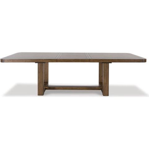 This dining extension table sits comfortably at the intersection of modern lodge and farmhouse aesthetics. Your warm and welcoming disposition is reflected in its charming architectural elements and light brown glazed finish. Even with its poise, it remains practical. A smooth extension feature serves up plenty of space for family and guests, defining your dining room with reliable function and style.
