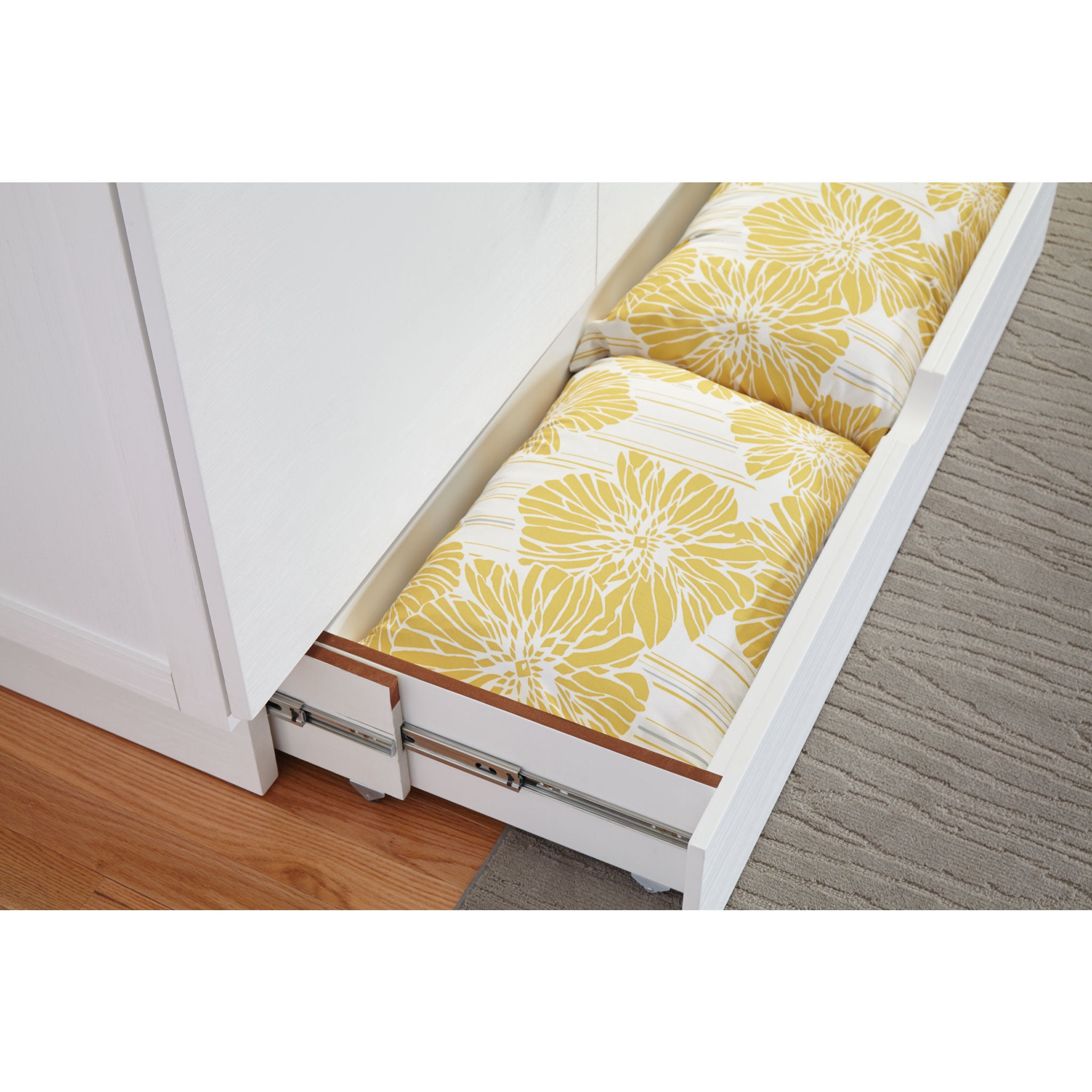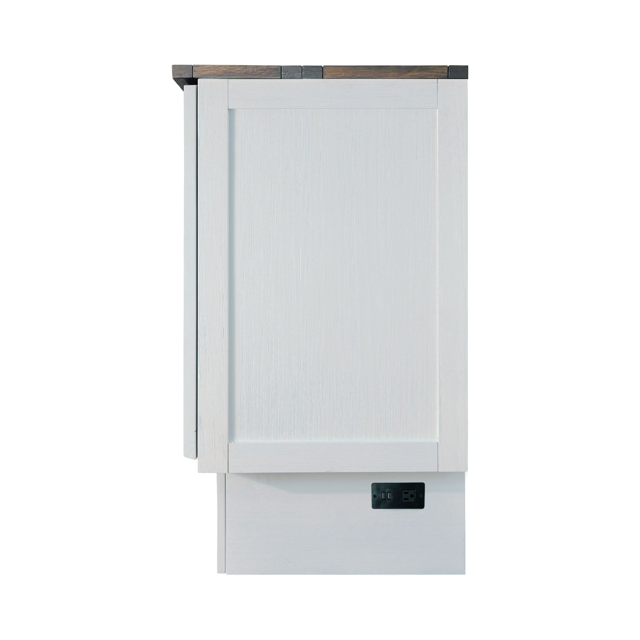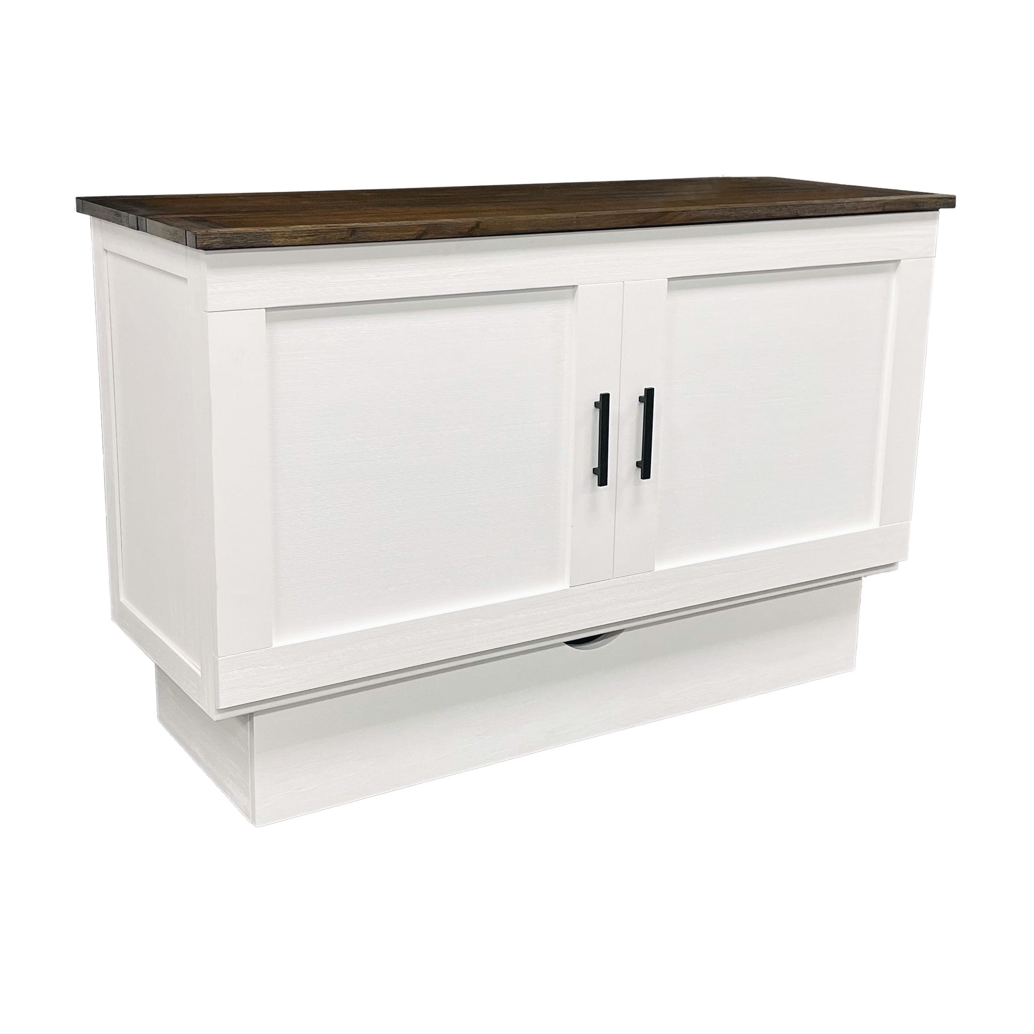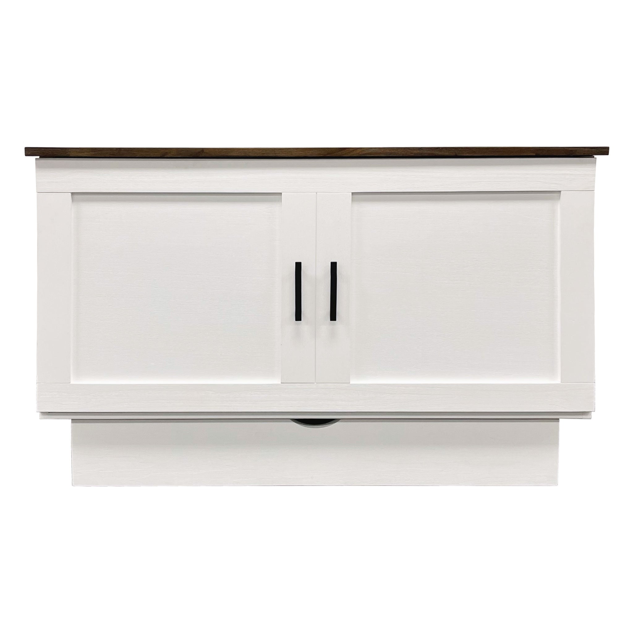 This brushed white and acacia finish has warmth and charm With traditionally eloquent styling and casual black hardware, it will no doubt give your room a stunning look.