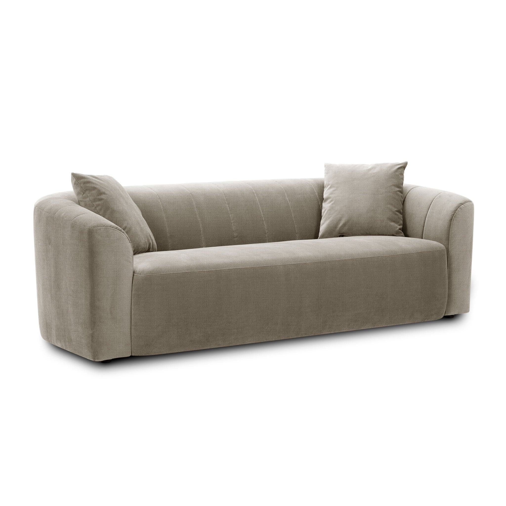 Sophistication meets versatility with the Clyde Sofa, designed to suit both casual and refined spaces. Its elegant curved back design adds a touch of modernity, while the sturdy solid and wood frame ensures lasting durability. Channeled stitching enhances the sofa's full-body design, and the fixed seat and back cushions maintain a clean, tailored look. Perfect for any stylish living room, the Clyde Sofa blends seamlessly into any décor while offering timeless elegance.