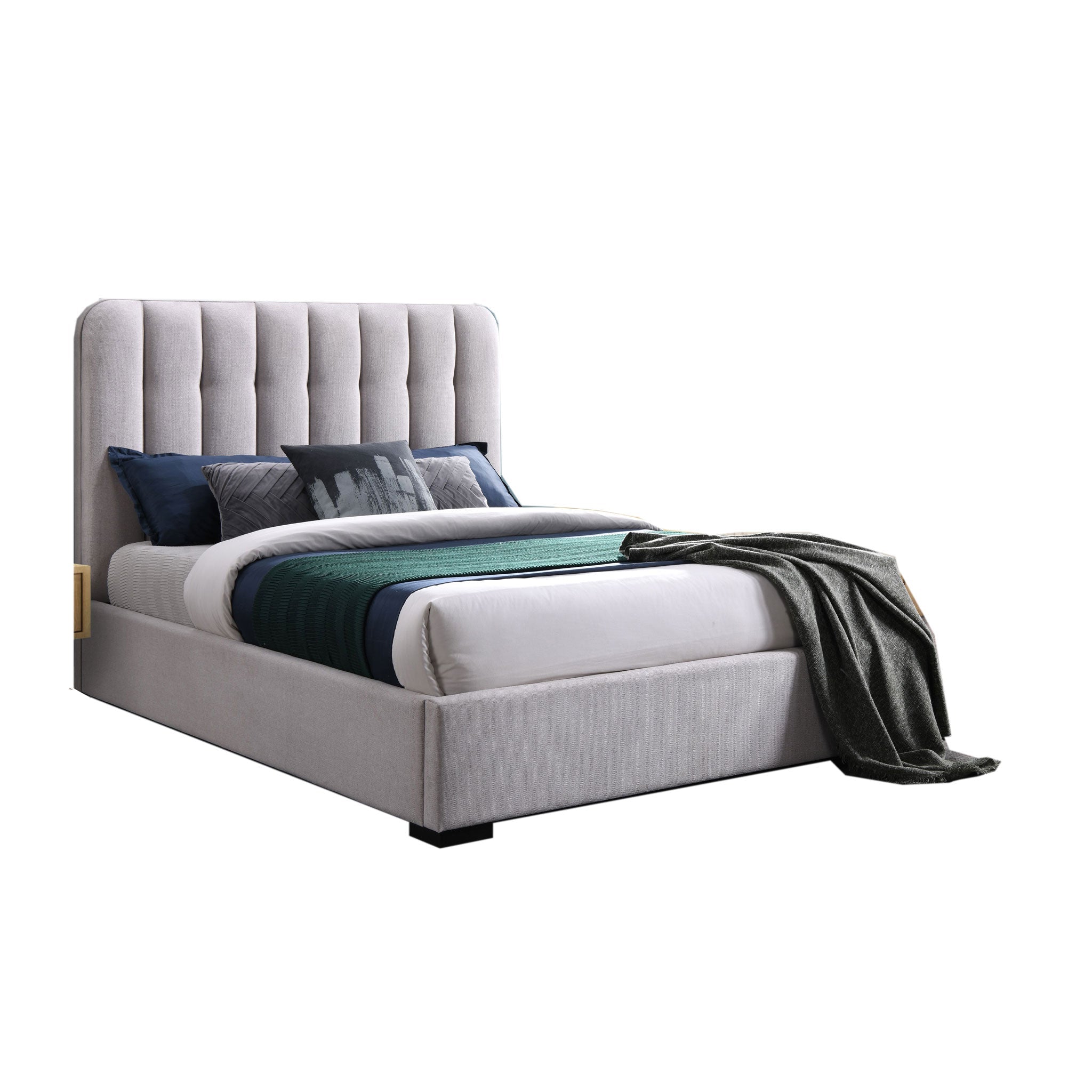 Bold yet cozy, the Freya bed pairs clean grey upholstery with a modern silhouette. Its plush headboard and footboard provide a stylish focal point, while the sturdy platform frame delivers reliable support without a box spring. Perfect for contemporary spaces.