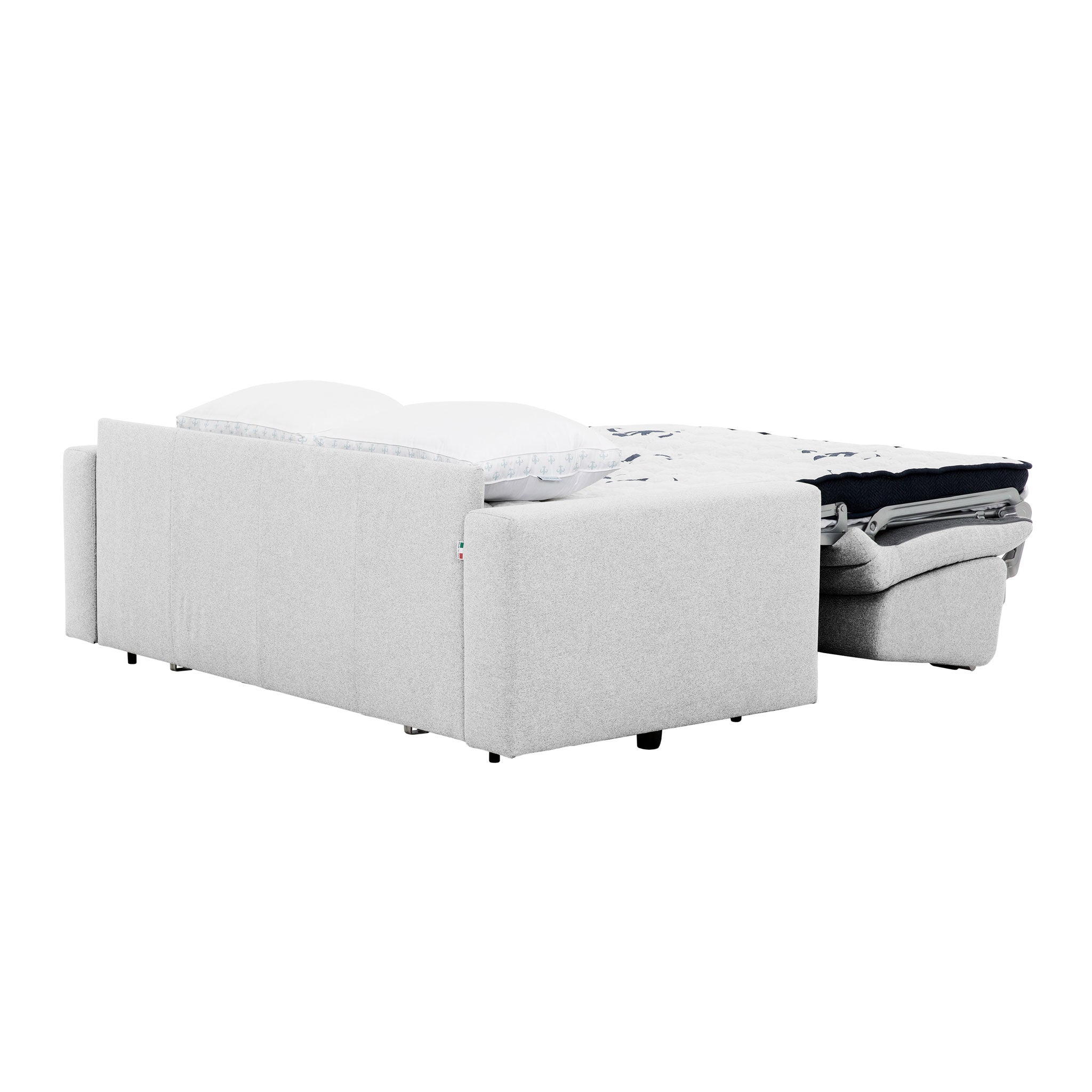 Discover the Giotto Full Sofabed, a luxurious addition to your living space, available in the sophisticated Nashville Silver shade. Meticulously crafted in Italy, this sleeper sofa epitomizes modern elegance with its sleek grey tone and is supported by stylish black legs.