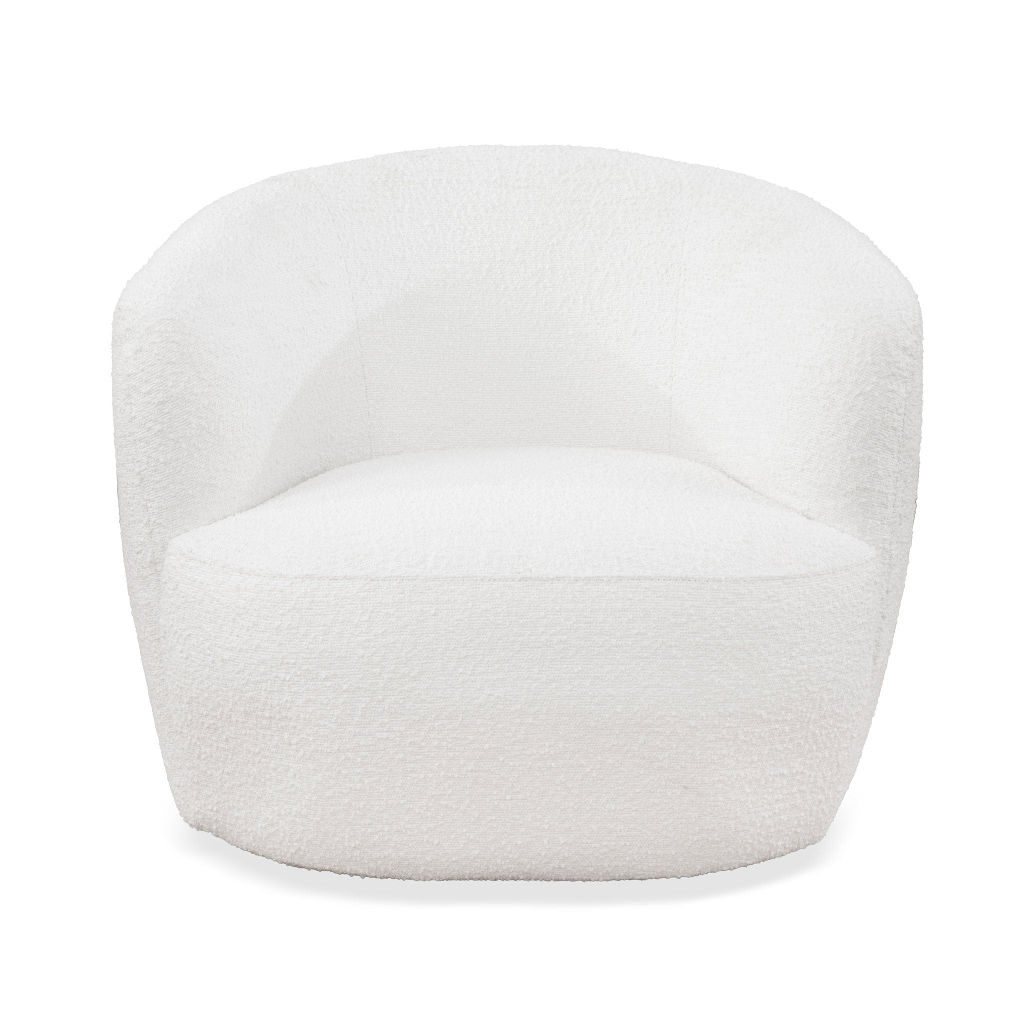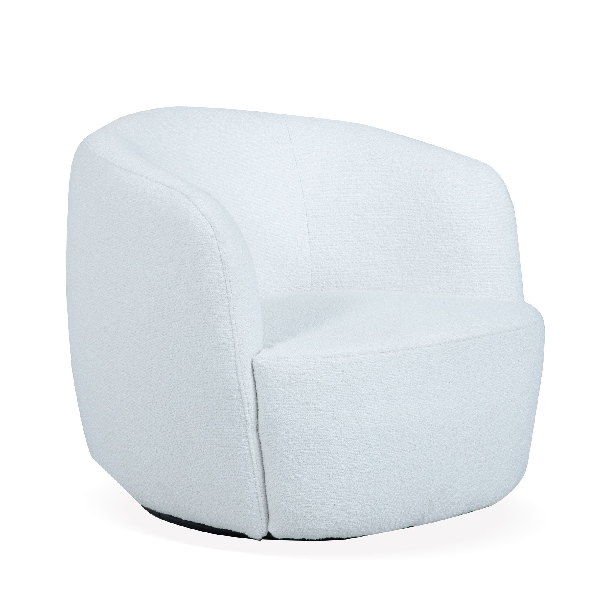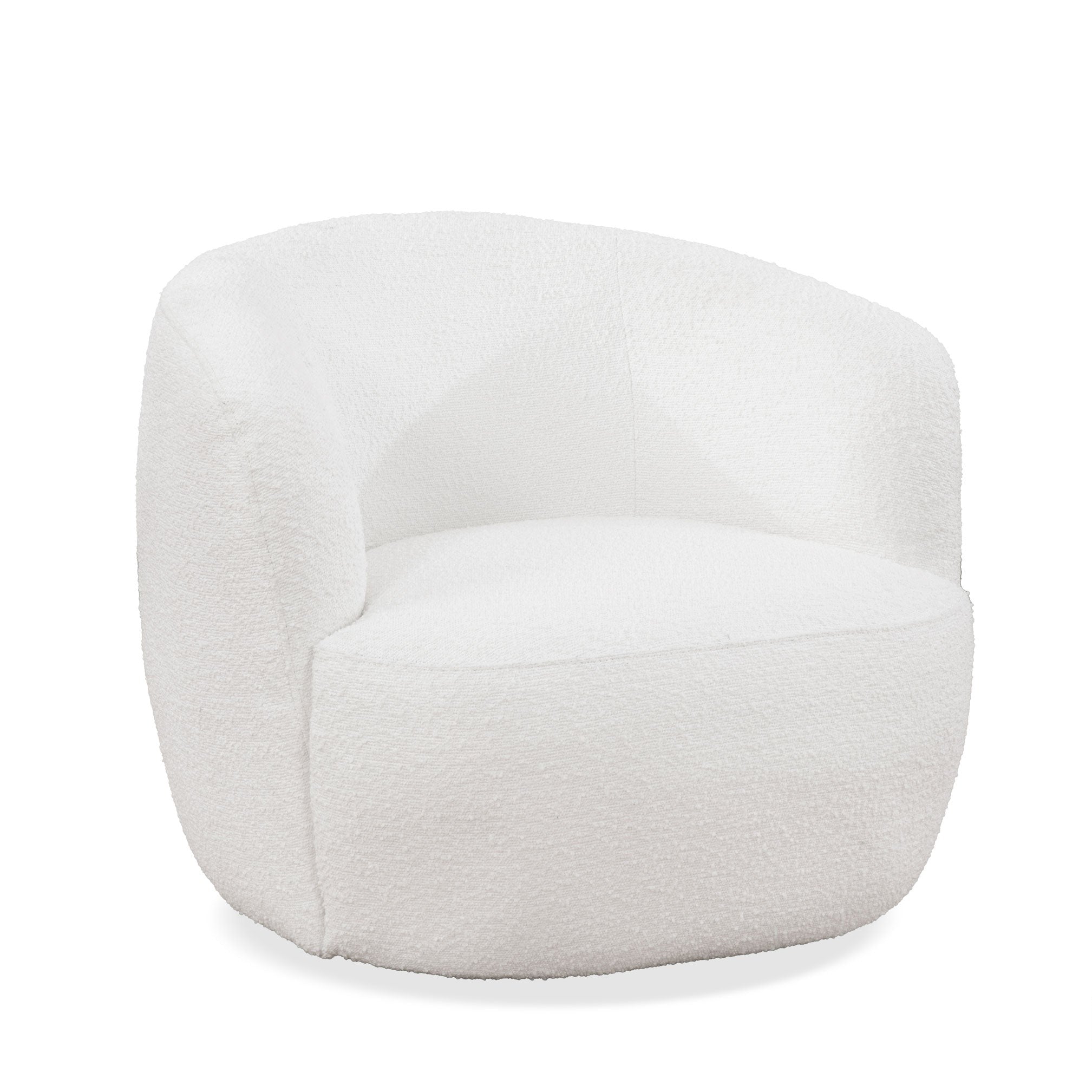 The Nevada Swivel Barrel Chair is a modern white chair. Its minimalist design and neutral color make it a versatile addition to any space. Whether you're looking to furnish your living room, bedroom, or office, this chair will effortlessly blend in with any decor style.  This chair is not only stylish but also durable and long-lasting. Upgrade your seating experience with this elegant white chair.