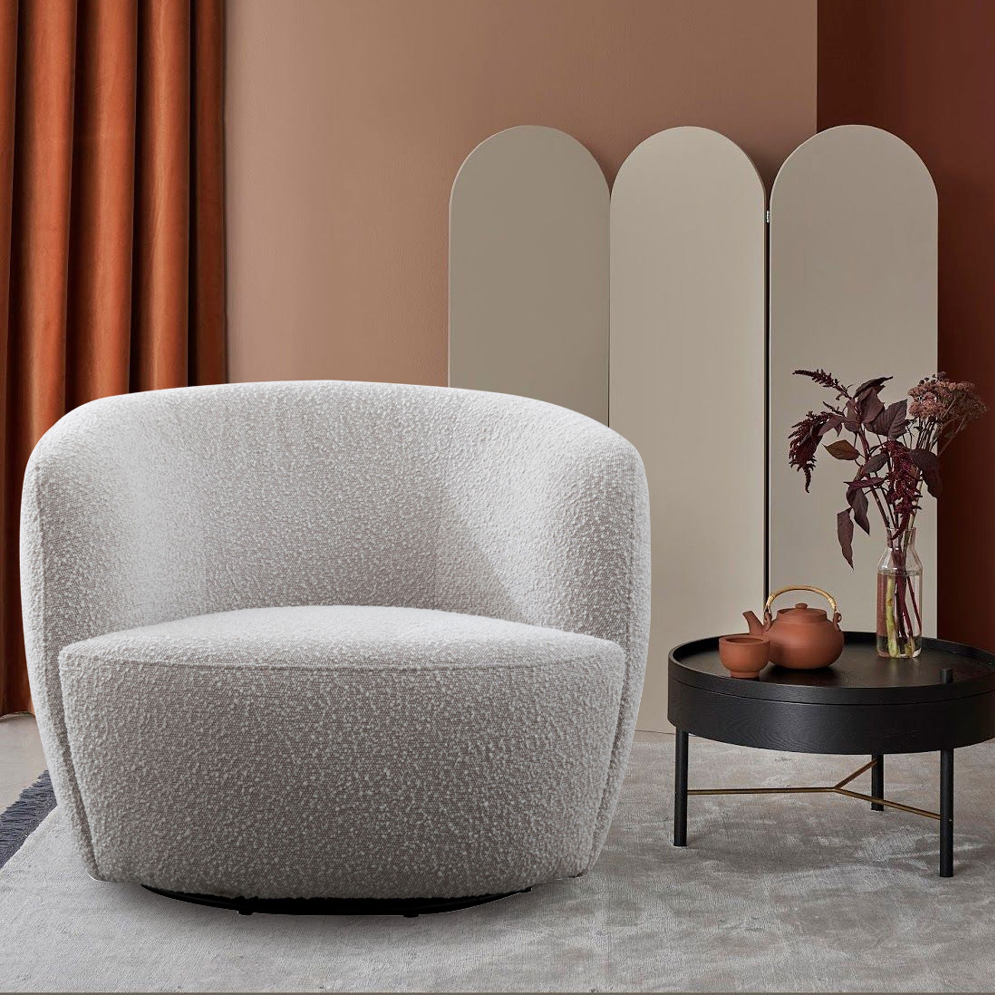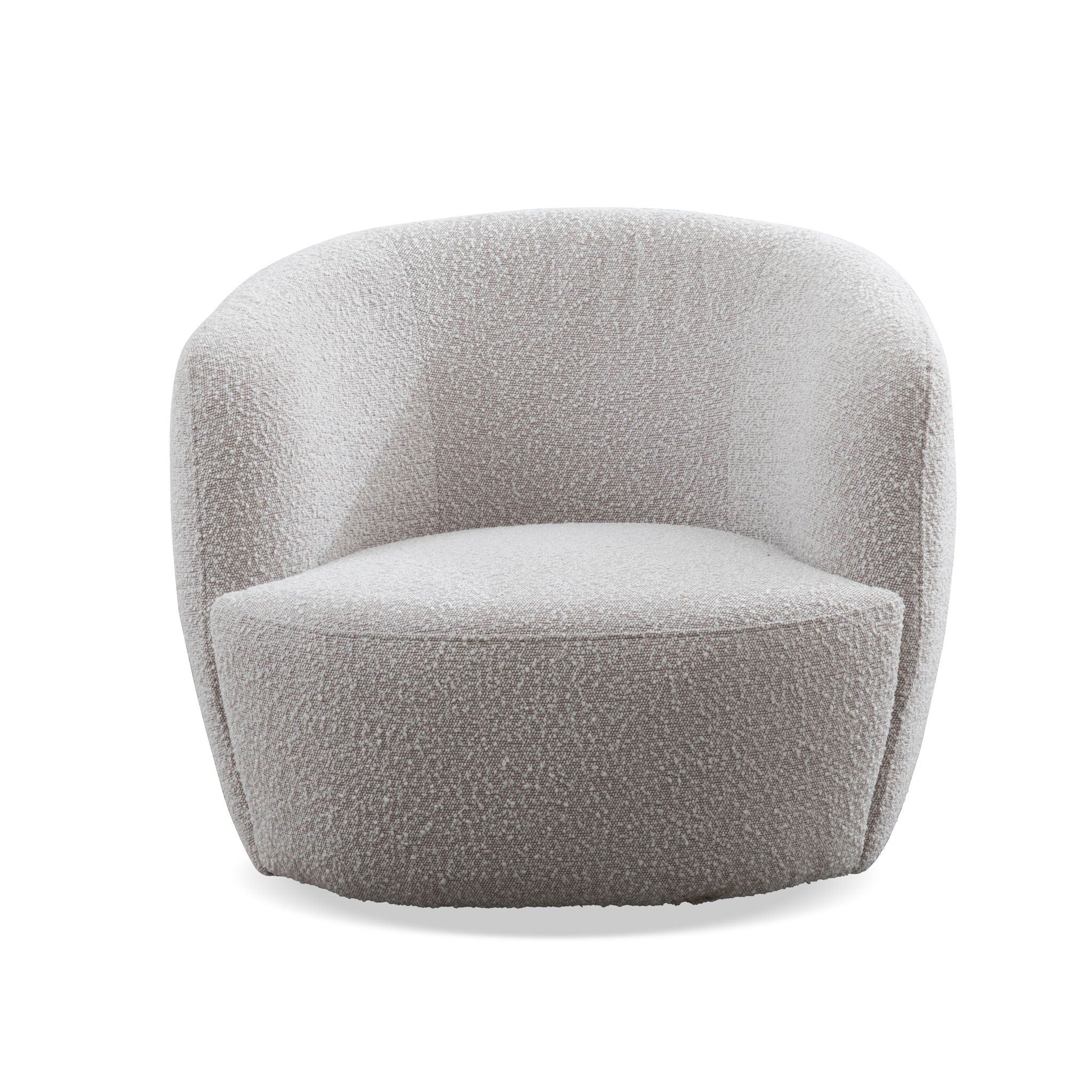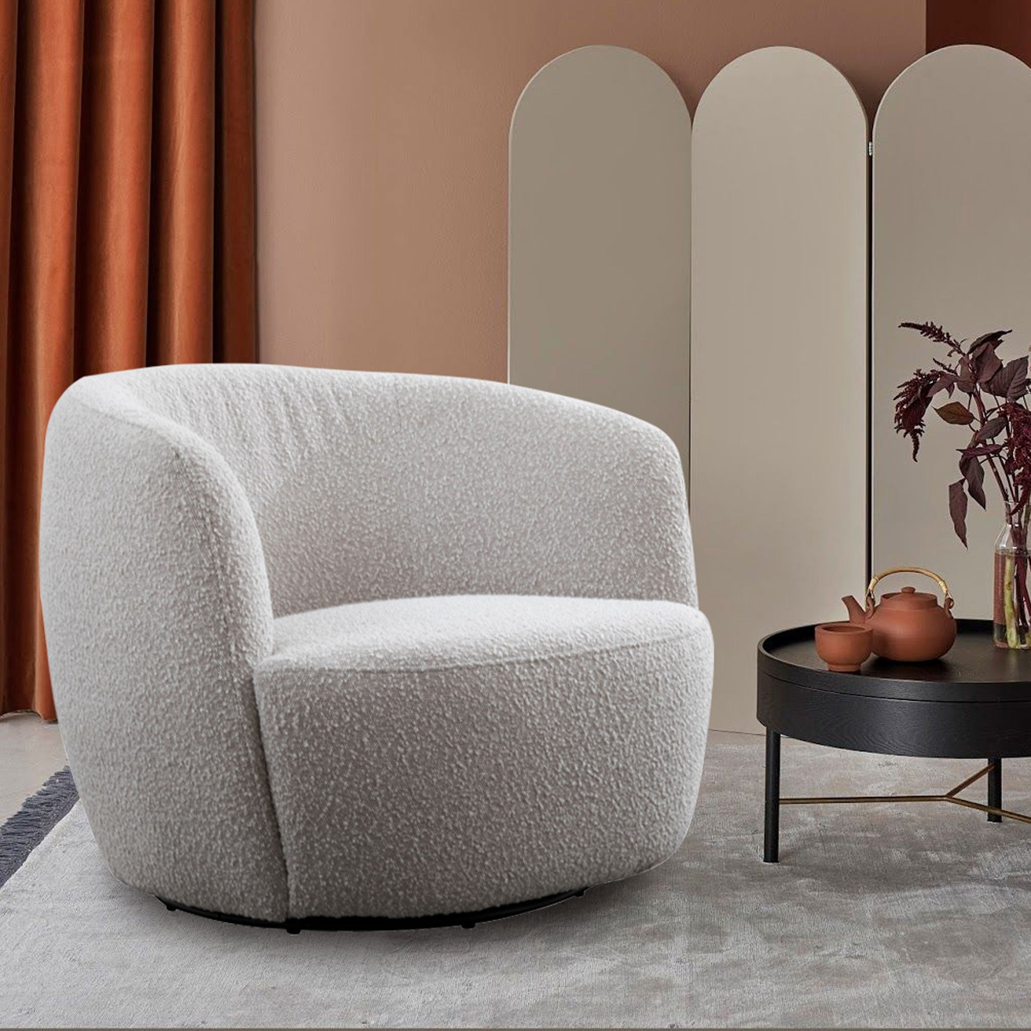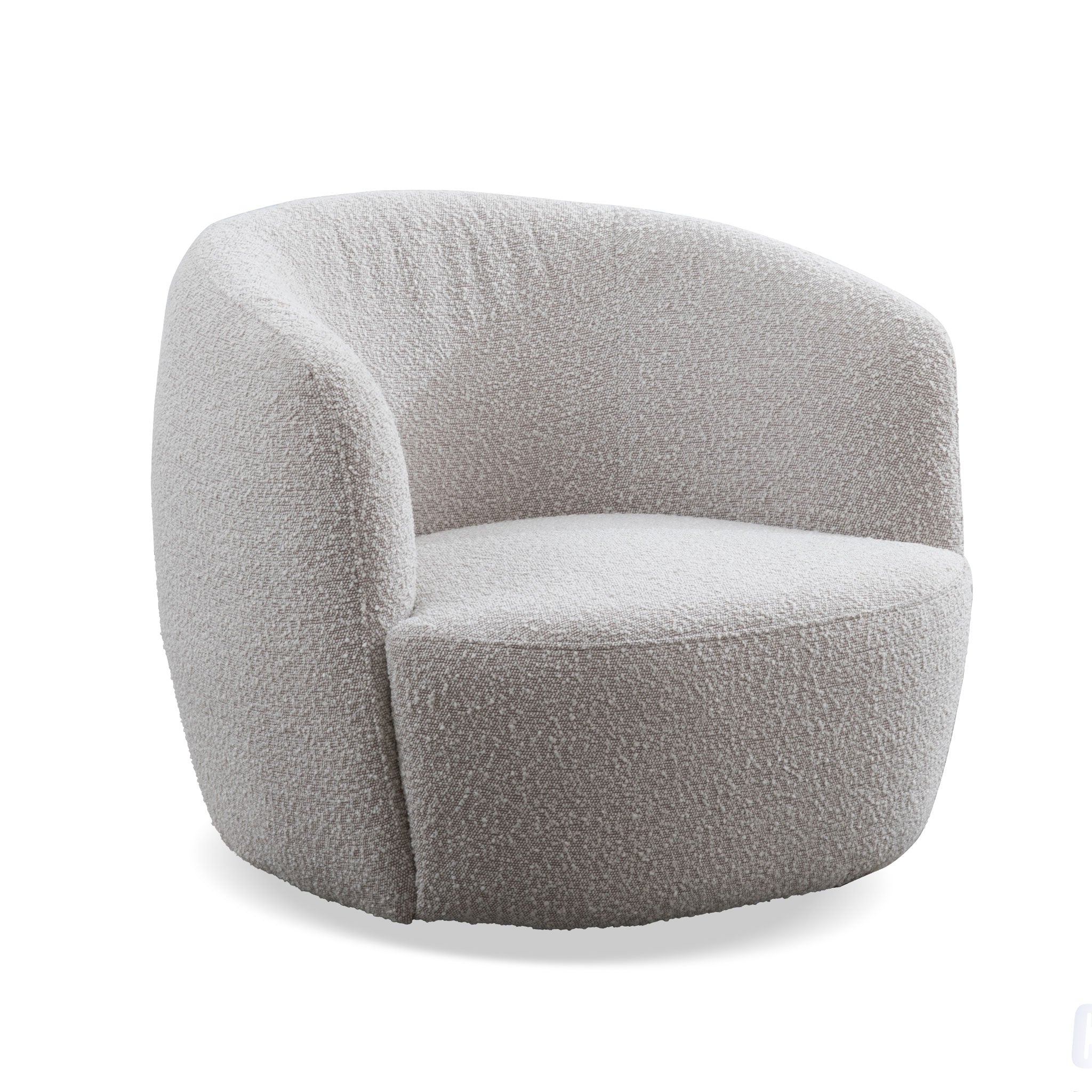 The Nevada Swivel Barrel Chair is a modern white chair. Its minimalist design and neutral color make it a versatile addition to any space. Whether you're looking to furnish your living room, bedroom, or office, this chair will effortlessly blend in with any decor style.  This chair is not only stylish but also durable and long-lasting. Upgrade your seating experience with this elegant white chair.
