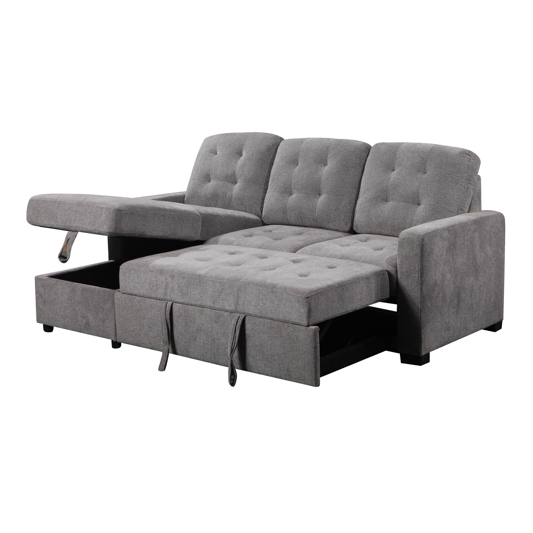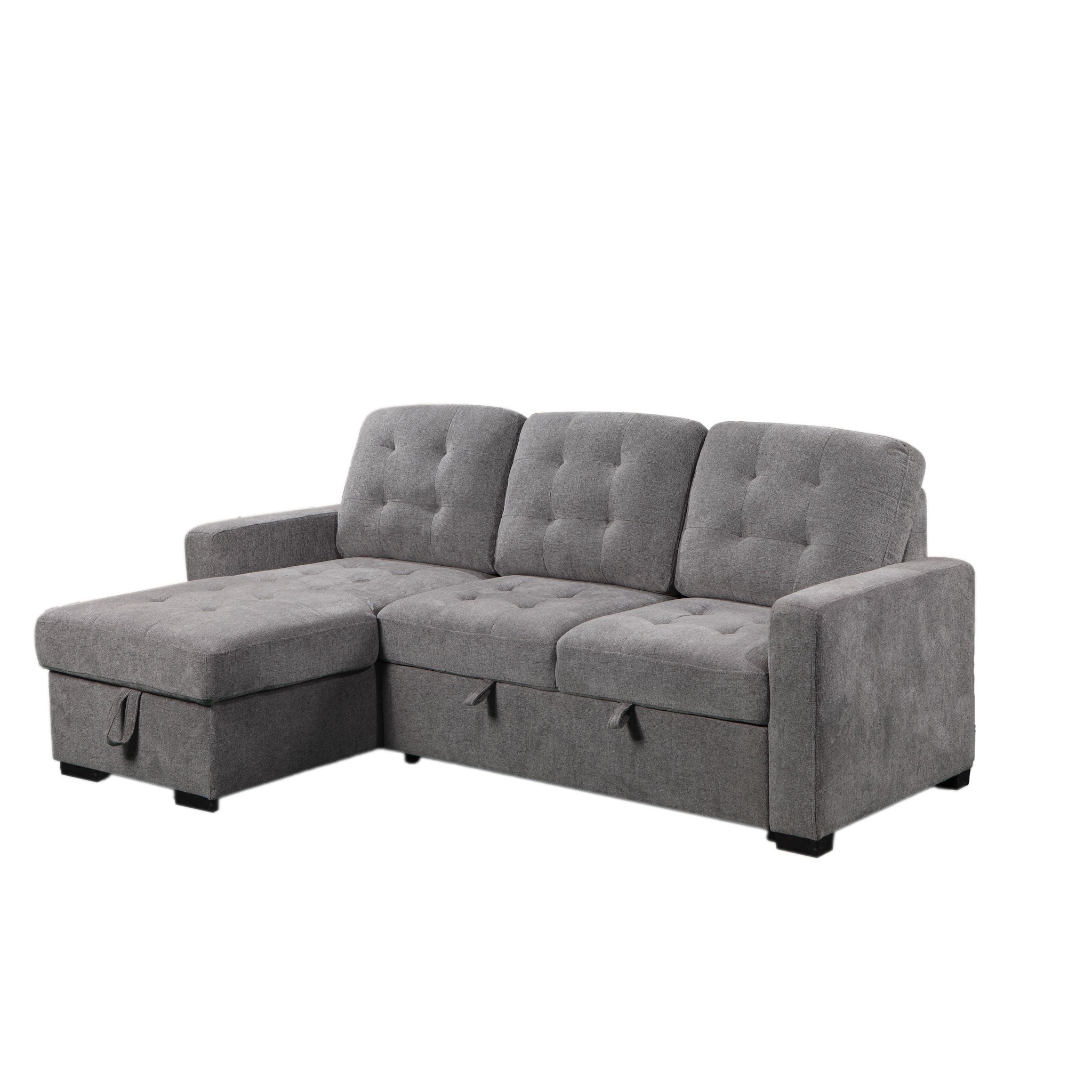 Meet the Preston Sleeper Chaise Sectional, a stylish and adaptable grey sectional couch featuring a chaise. Its modern and sleek design flawlessly integrates comfort and functionality, making it an ideal addition to any living space.