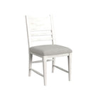 The Rogen 7-piece dining set combines modern rustic style with thoughtful design. A rectangular table with a removable leaf and angled legs offers flexibility and stability, while the rustic white and woodgrain finish brings warmth to your space. Six ladder-back chairs with upholstered seats ensure everyone has a comfortable and stylish place at the table.