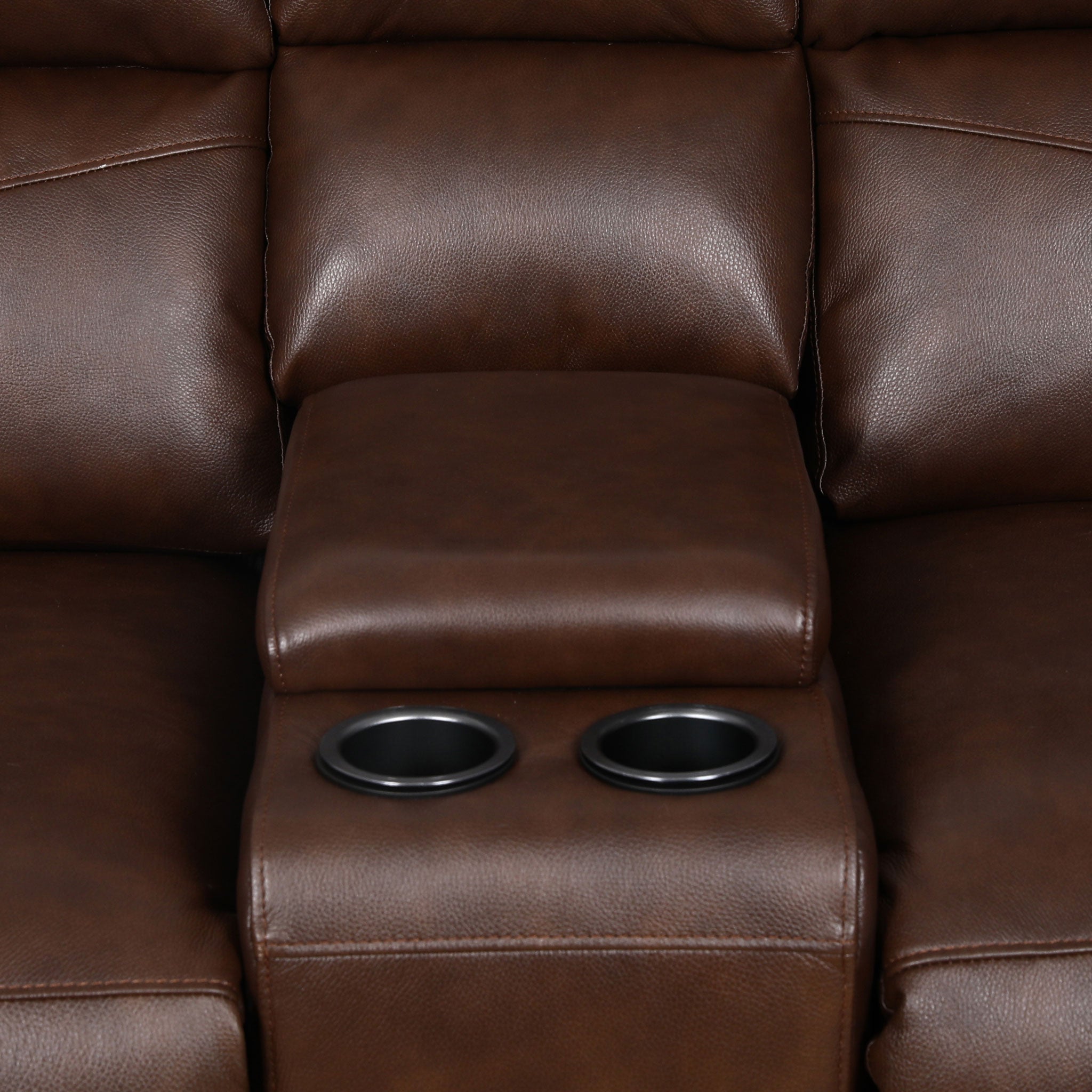The Winston 6 Piece Leather Sectional brings together refined style and next-level comfort. Upholstered in leather in the colour Brazil Tobacco, it features three power reclining seats that let you relax at the touch of a button. A built-in storage console with two drink holders keeps remotes, snacks, and beverages close by—perfect for movie nights or casual lounging. With its generous layout and timeless design, the Winston adds both luxury and practicality to your living space.