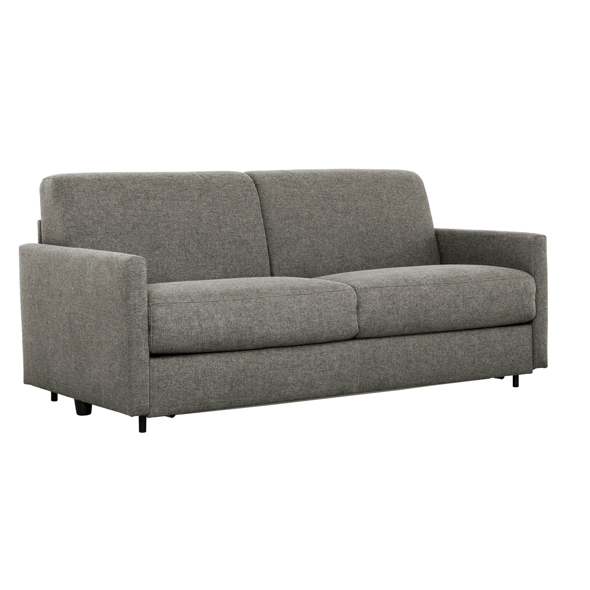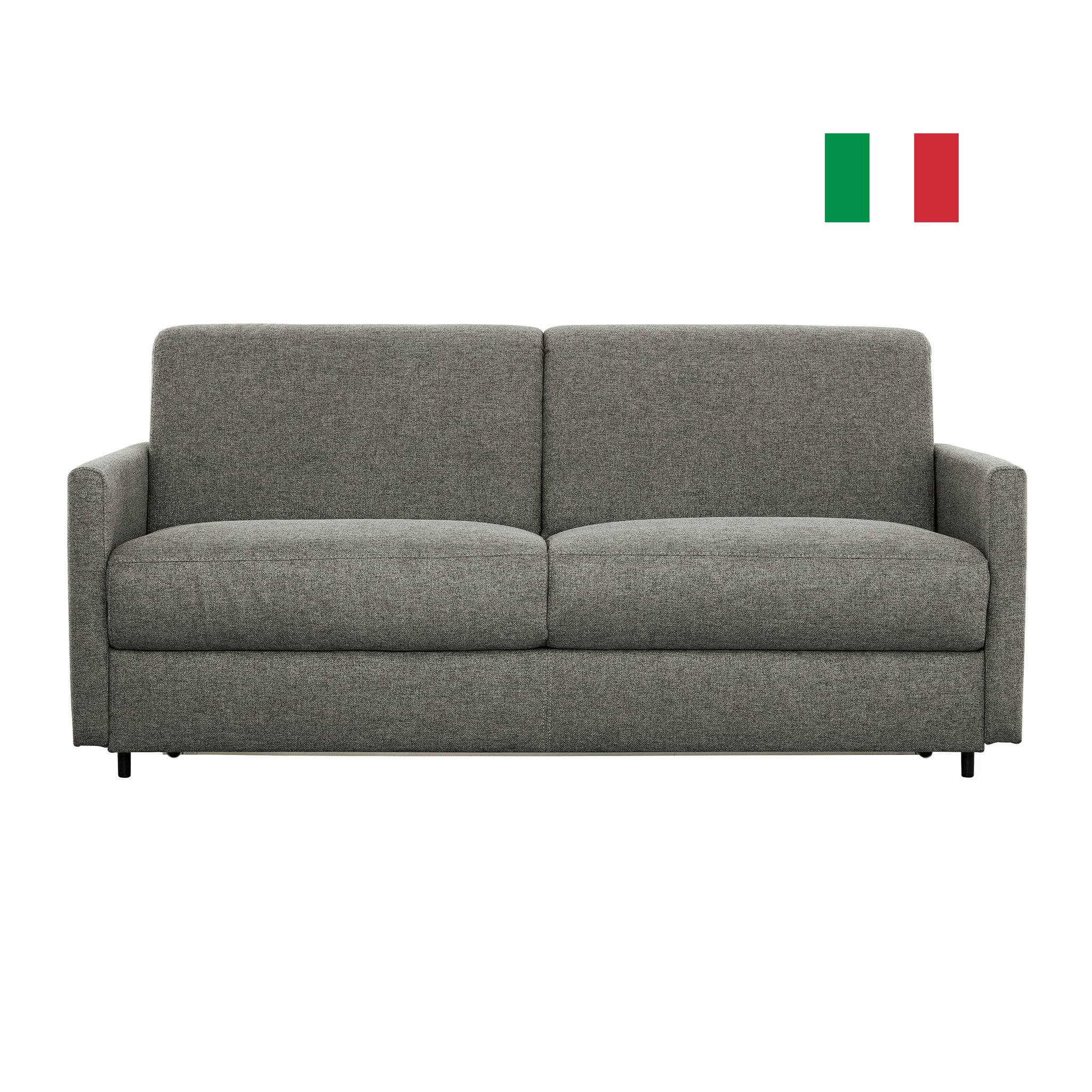 Experience our Benito Full Sofabed in the timeless Nashville Stone colour, expertly made in Italy. This refined sleeper sofa exudes a sleek charm with its contemporary grey hue, complemented by a sleek black legs.