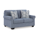 This loveseat is defined by comfort, convenience and classic style. Soft to the touch and stain-resistant, the family-friendly Next-Gen Nuvella™ fabric is easy to maintain. And you'll love the universal appeal of its denim-inspired hue. With roll arms adding a dash of traditional flair, the loveseat is a simply chic approach to everyday relaxation.