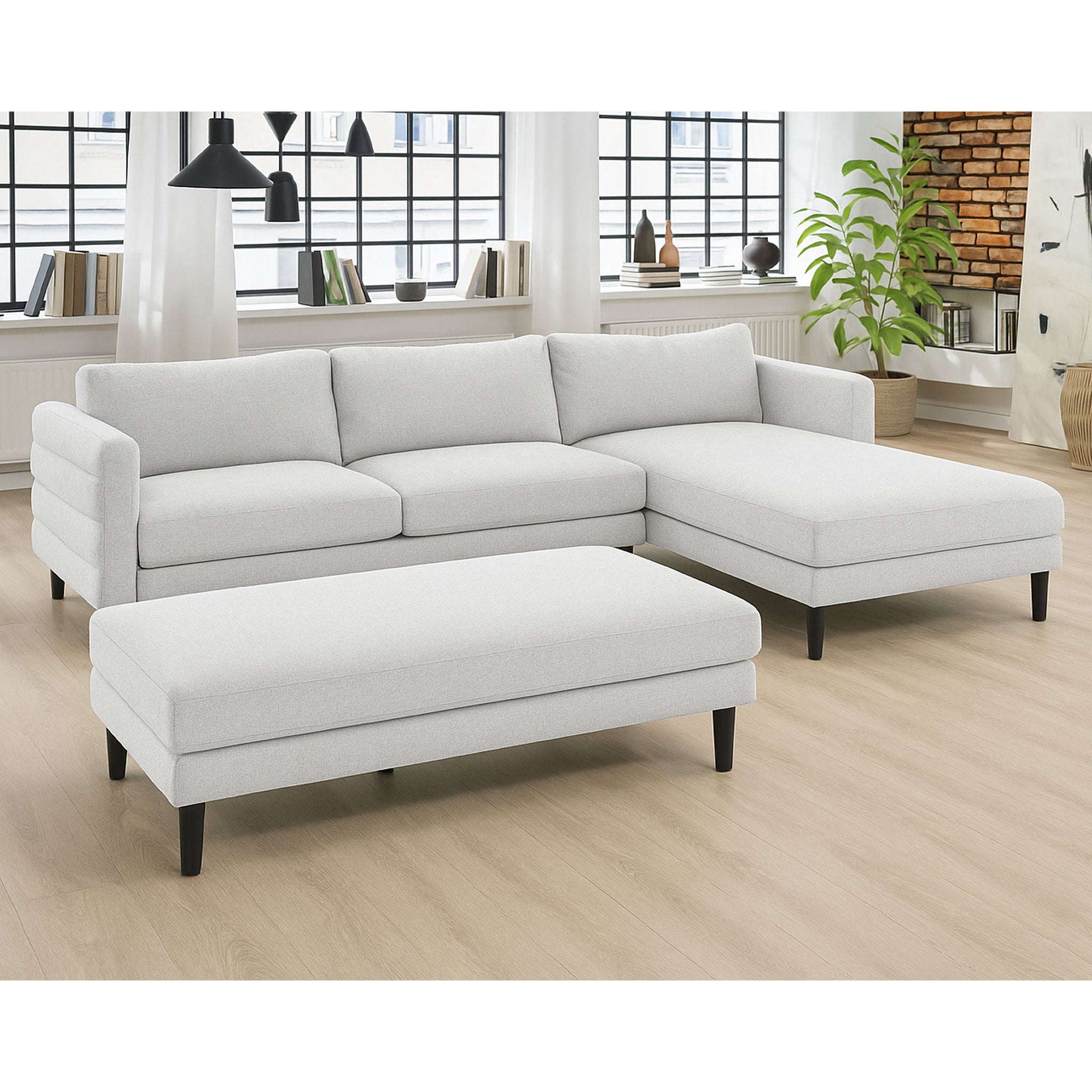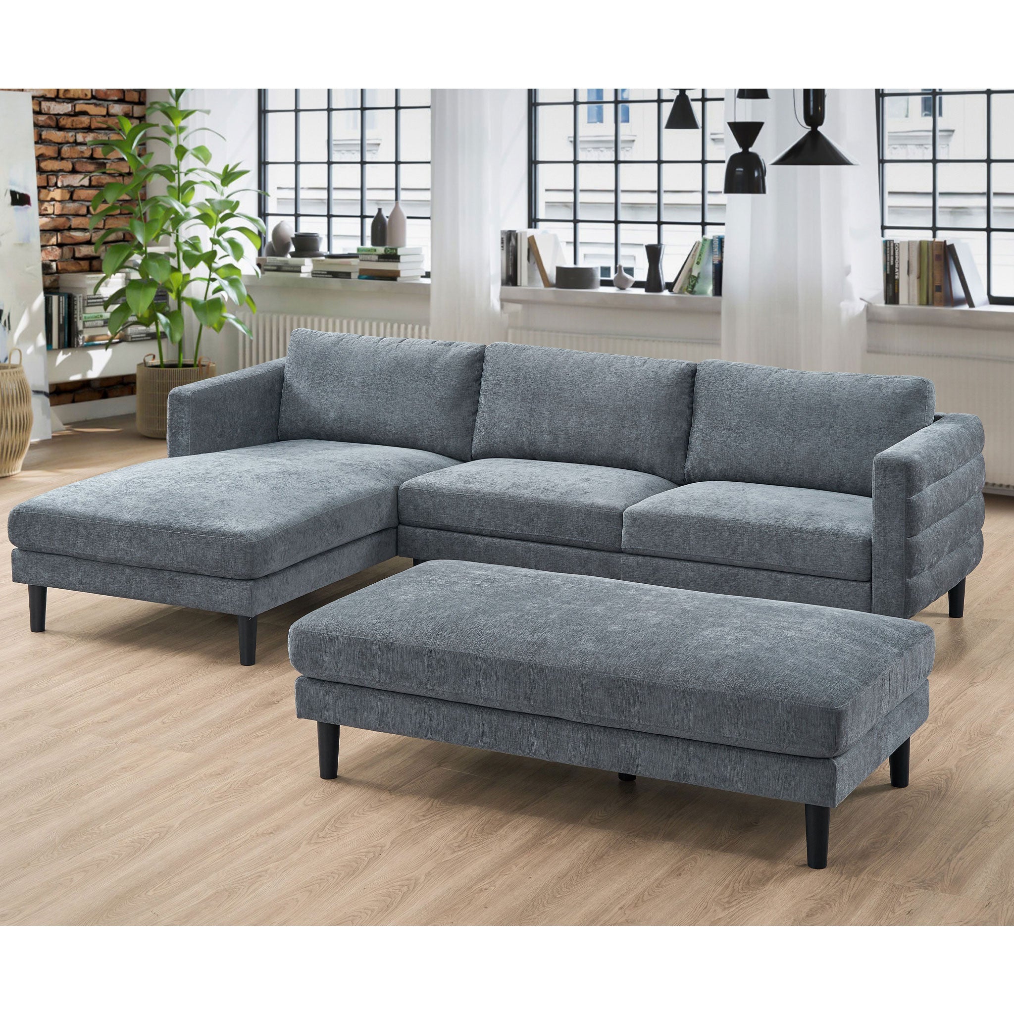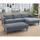 The Myra Sofa Chaise combines modern design with extended lounging space. Upholstered in linen or charcoal fabric with black legs and arms, it offers a comfortable spot to relax or entertain guests. Its clean lines and versatile style allow it to pair perfectly with other pieces from the Myra collection, creating a cohesive and functional living space.