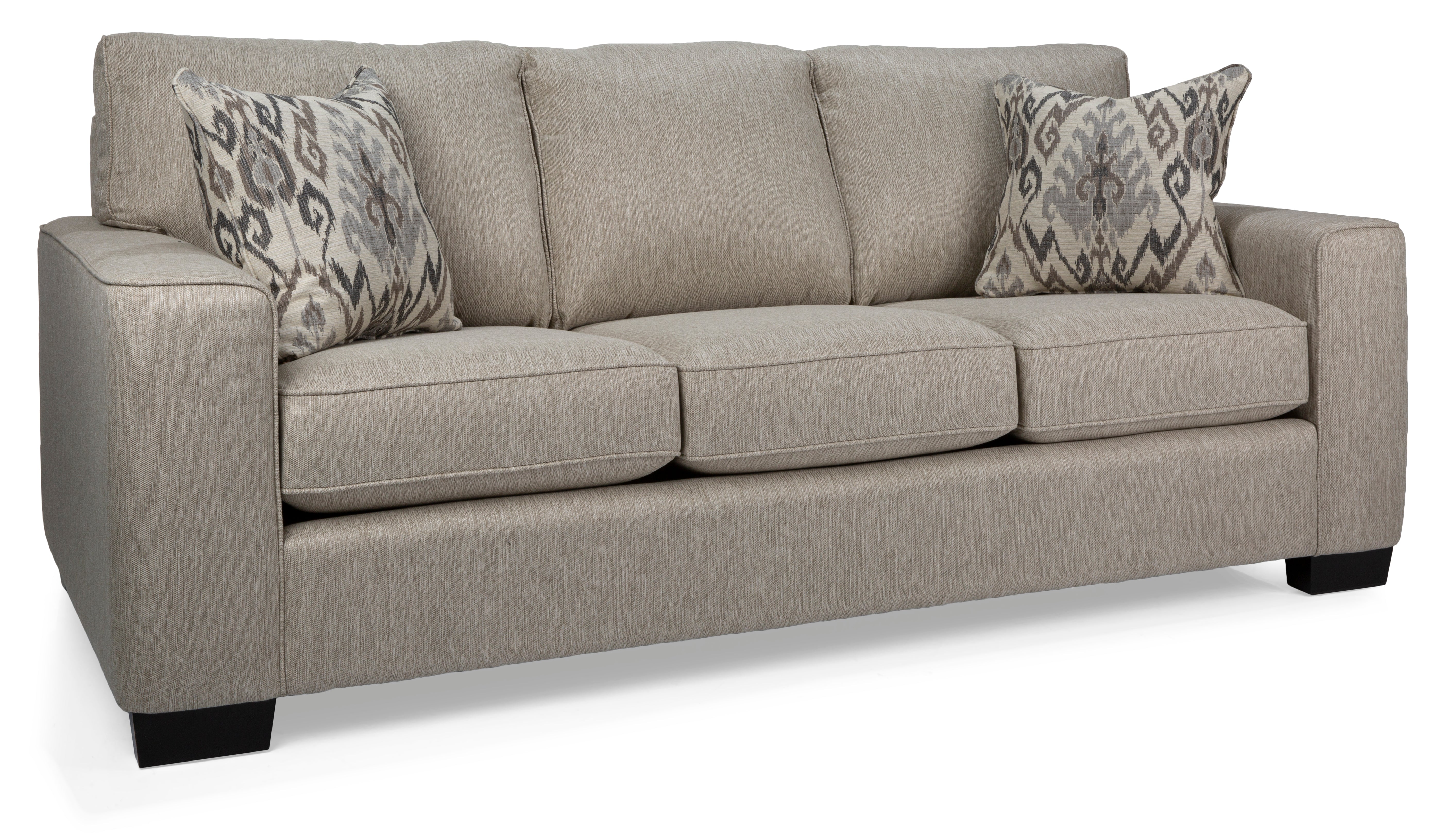 The Stoked Sand Sofa with wide arm and Semi Attached back offers a Modern look for a transitional lifestyle. Quality Canadian made upholstery. Optional wood or chrome sofa legs allow you to play with the style.