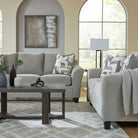 Subtle in color, big on style possibilities. This sofa is a transitional take on everyday comfort. Its soft-to-the-touch upholstery keeps you cozy as you lounge, and the neutral hue is a perfect canvas for adding your own fashionable flair. Tidying up after kids or pets? It's easy to clean under and between the removable cushions.