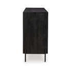 This accent cabinet showcases high-end style with a captivating design. A cleverly placed cutout offers a sneak peek inside, making it a versatile choice for use as a buffet, console or media cabinet. Contemporary and casual, this piece epitomizes laid-back luxury.