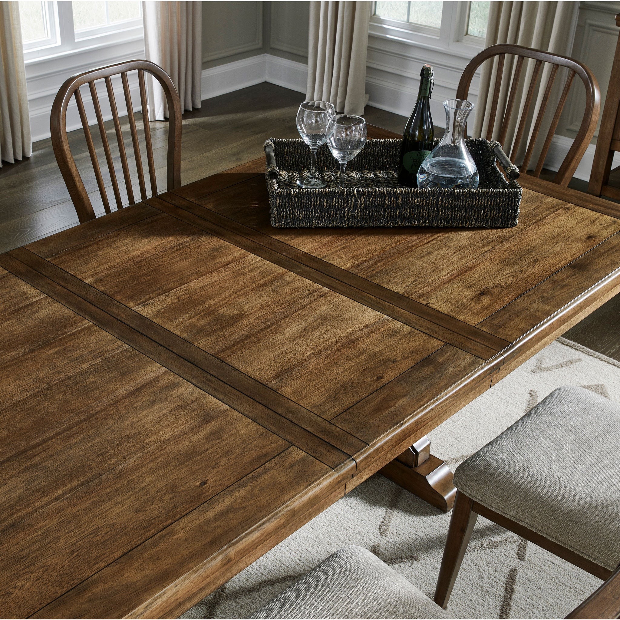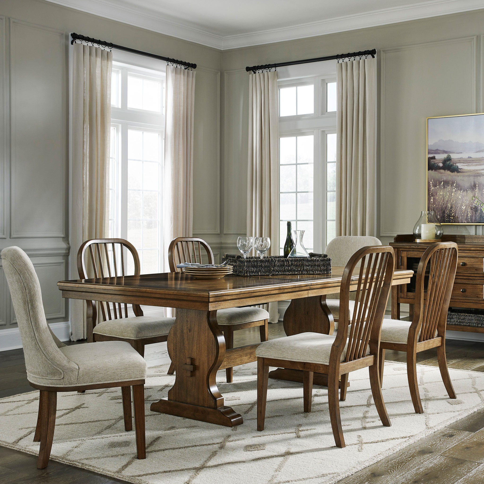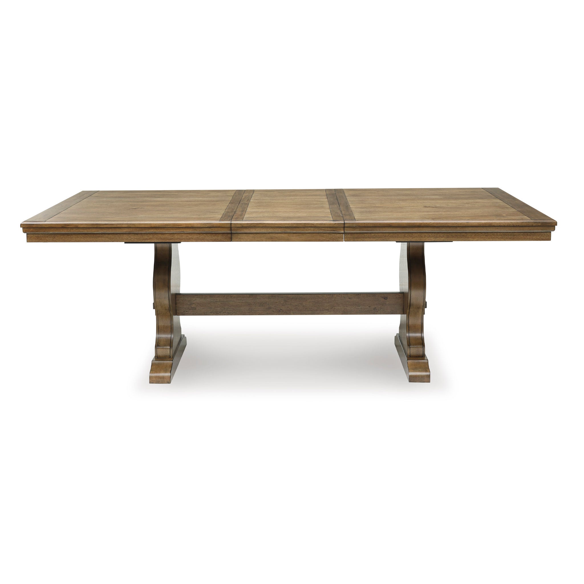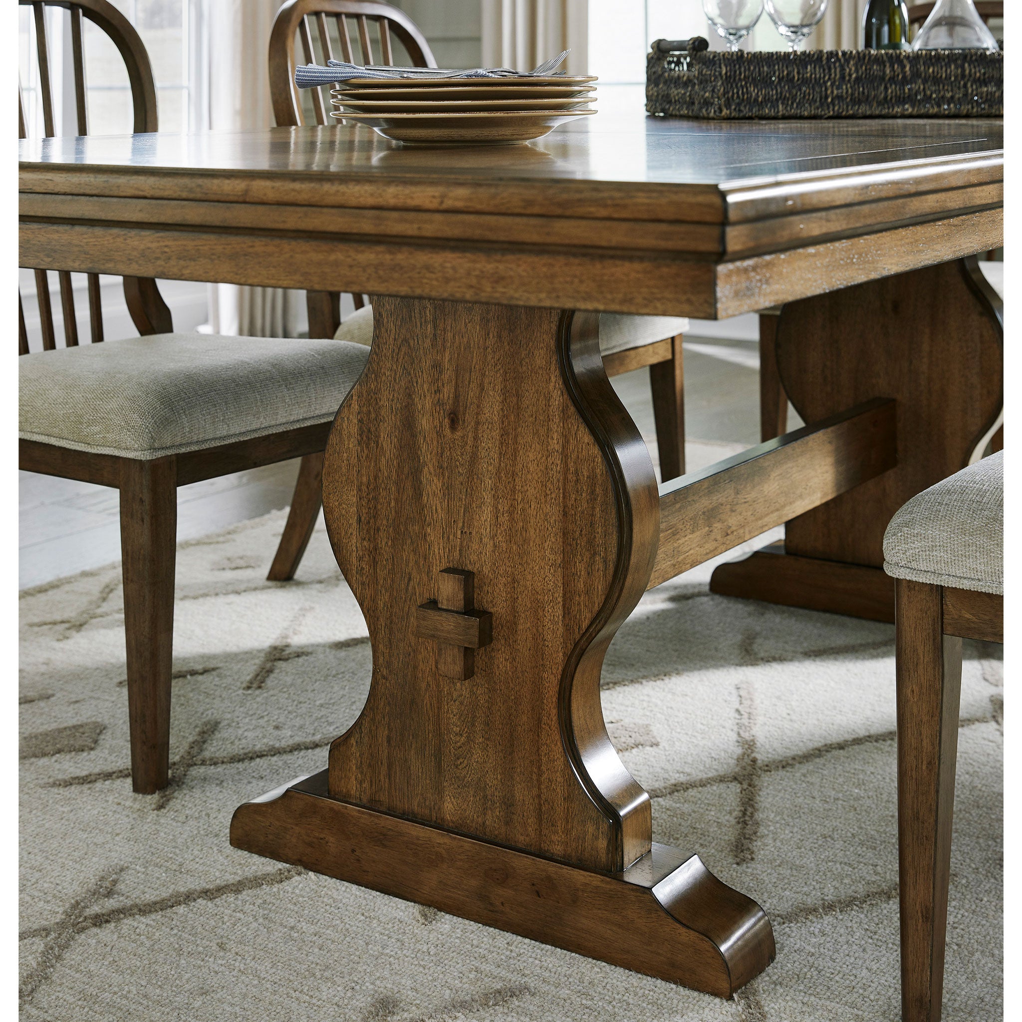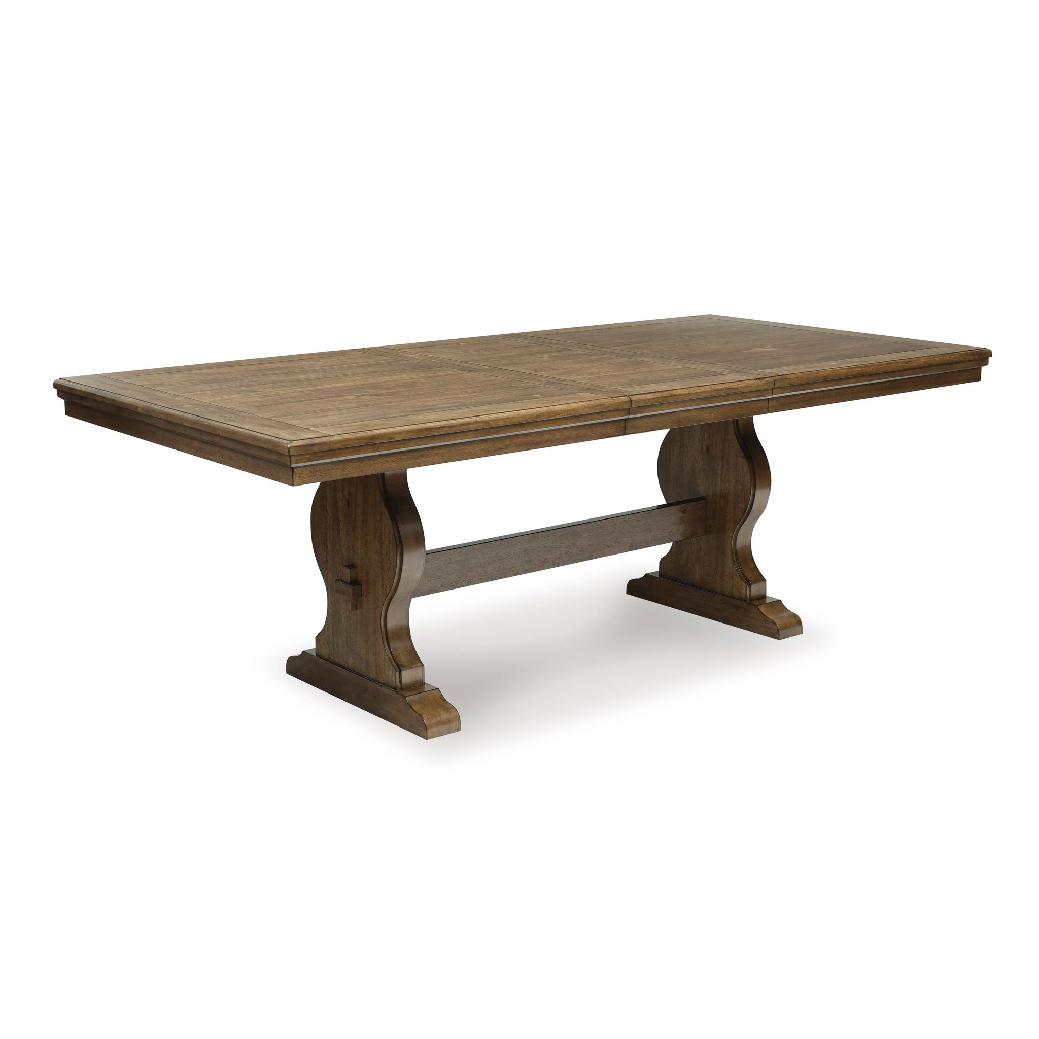 Traditional style doesn’t have to be stuffy. It can feel warm, inviting and beautifully in the moment. Case in point: this extension dining table. Showcasing a double-pedestal trestle base and a removable leaf, it has an allure all its own. Equally special is the rich brown finish, which exudes a mood of timeless charm. How's that for relaxed refinement?