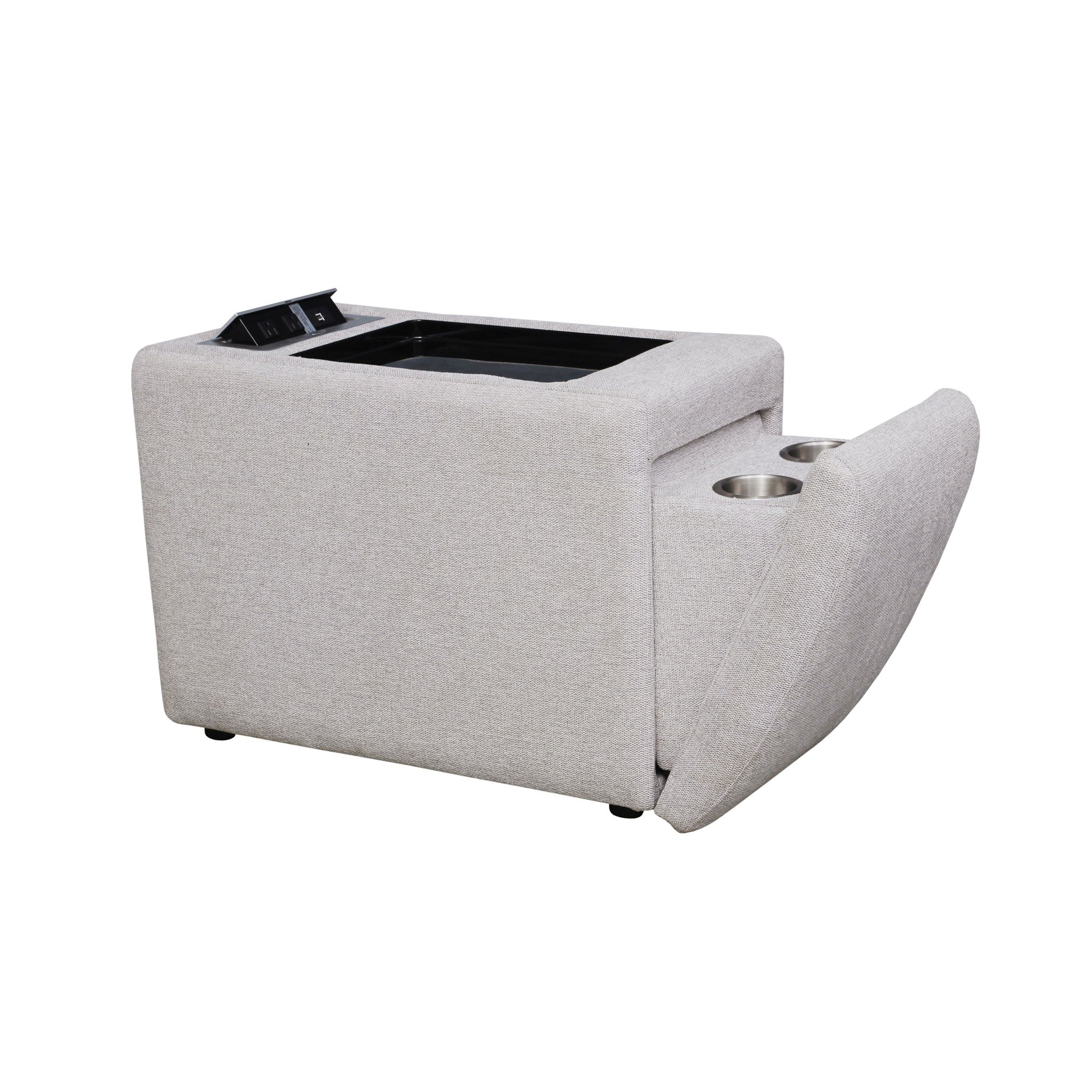 The Aida Power Console coordinates with the Aida Sectional and is designed to enhance comfort and convenience without disrupting the Aida sectional’s clean profile. Integrated storage keeps remotes, chargers, and everyday essentials neatly tucked away, while two retractable cup holders provide easy access for drinks when you need them. Built-in power adds modern functionality with two power outlets and a USB port, making it simple to keep devices charged while you relax. Thoughtfully designed to blend seamlessly with the Aida Sectional, this console delivers everyday practicality with a streamlined look.