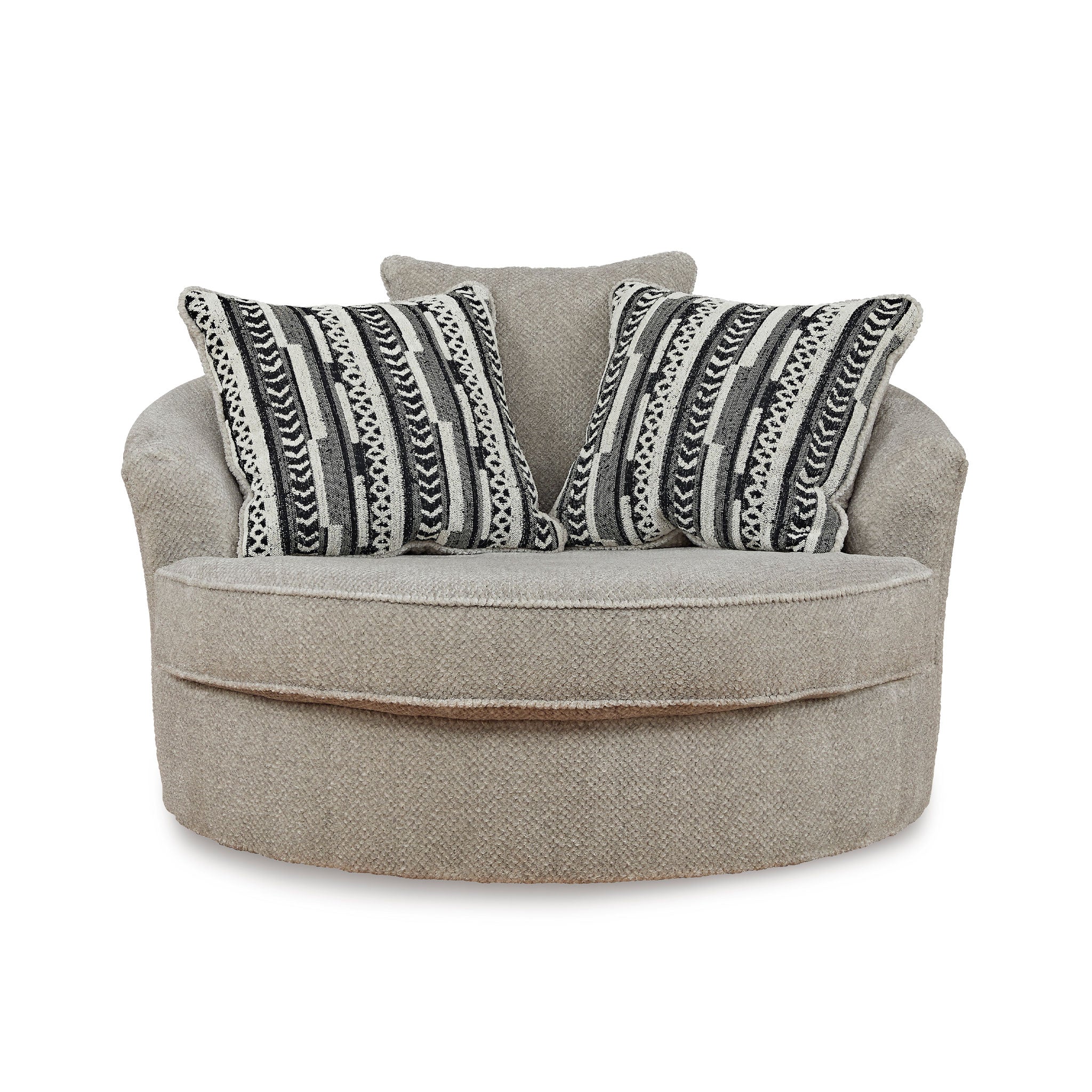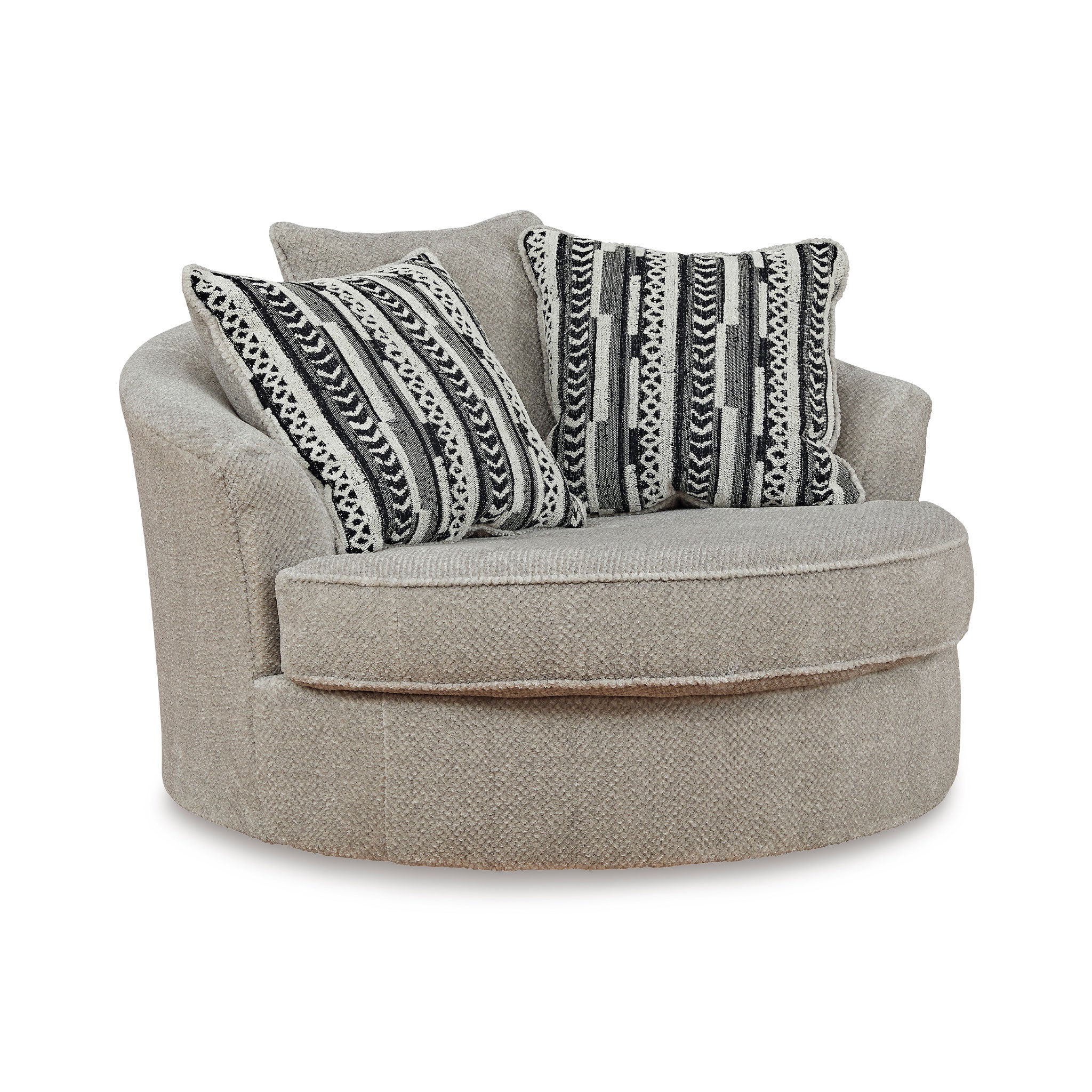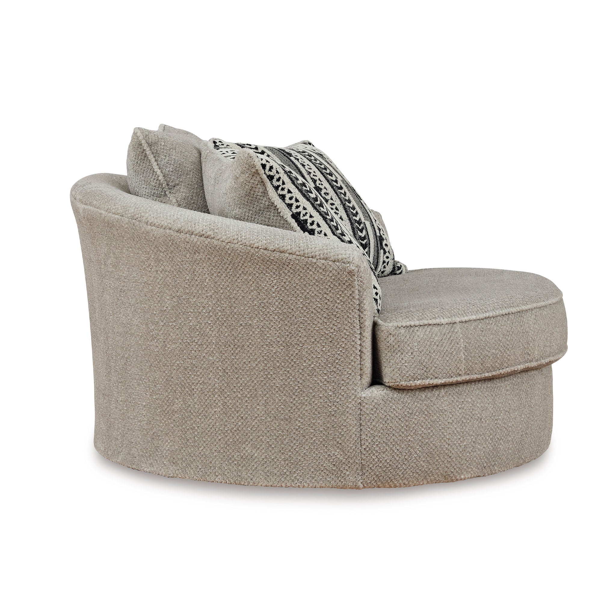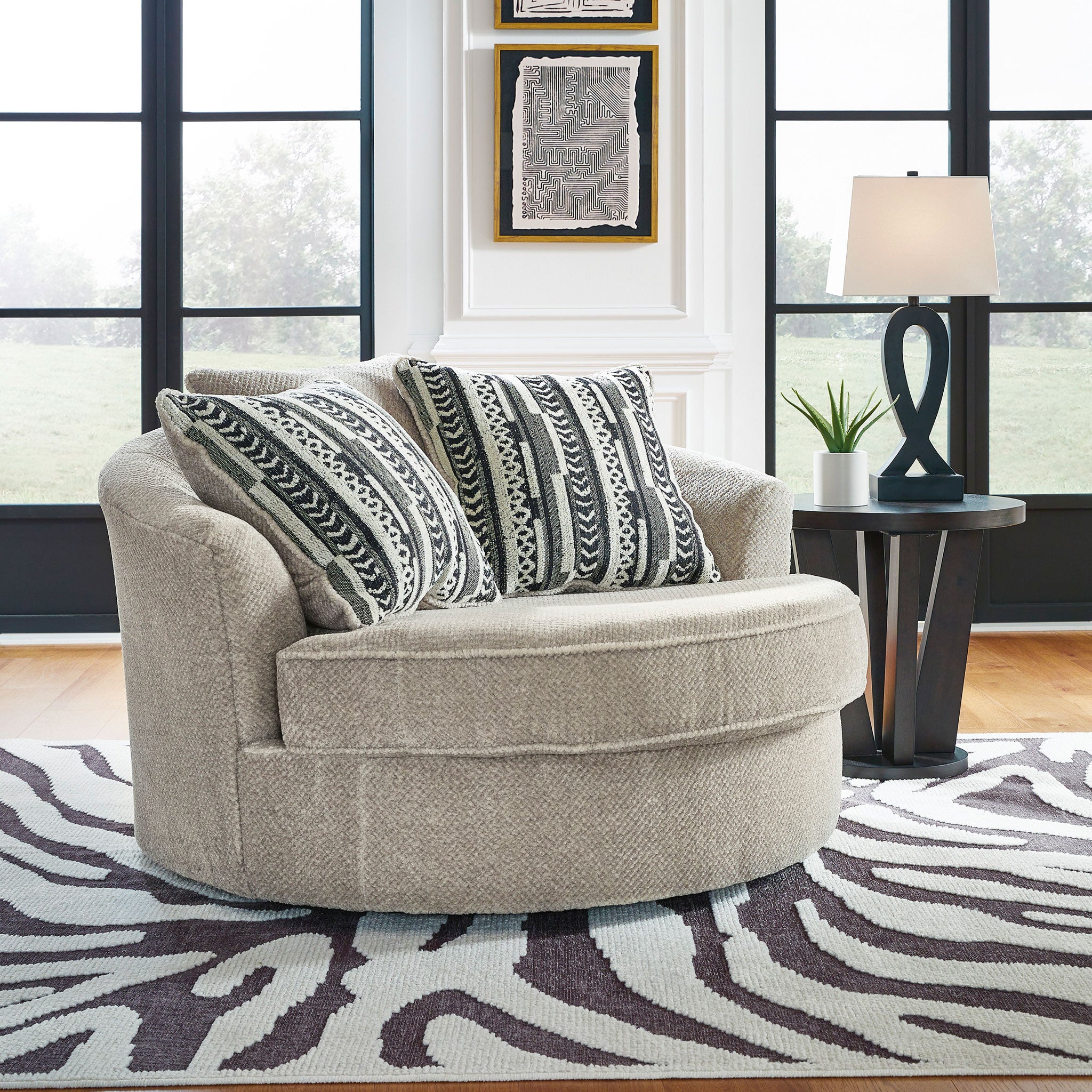 This oversized swivel accent chair caters to your need for contemporary comfort. Large in scale and decked out in feel-good fabric, it gives you space to sprawl out. And the 360-degree swivel motion makes it easy to view the TV or chat with others in your seating area. Quality time has never been so cozy.