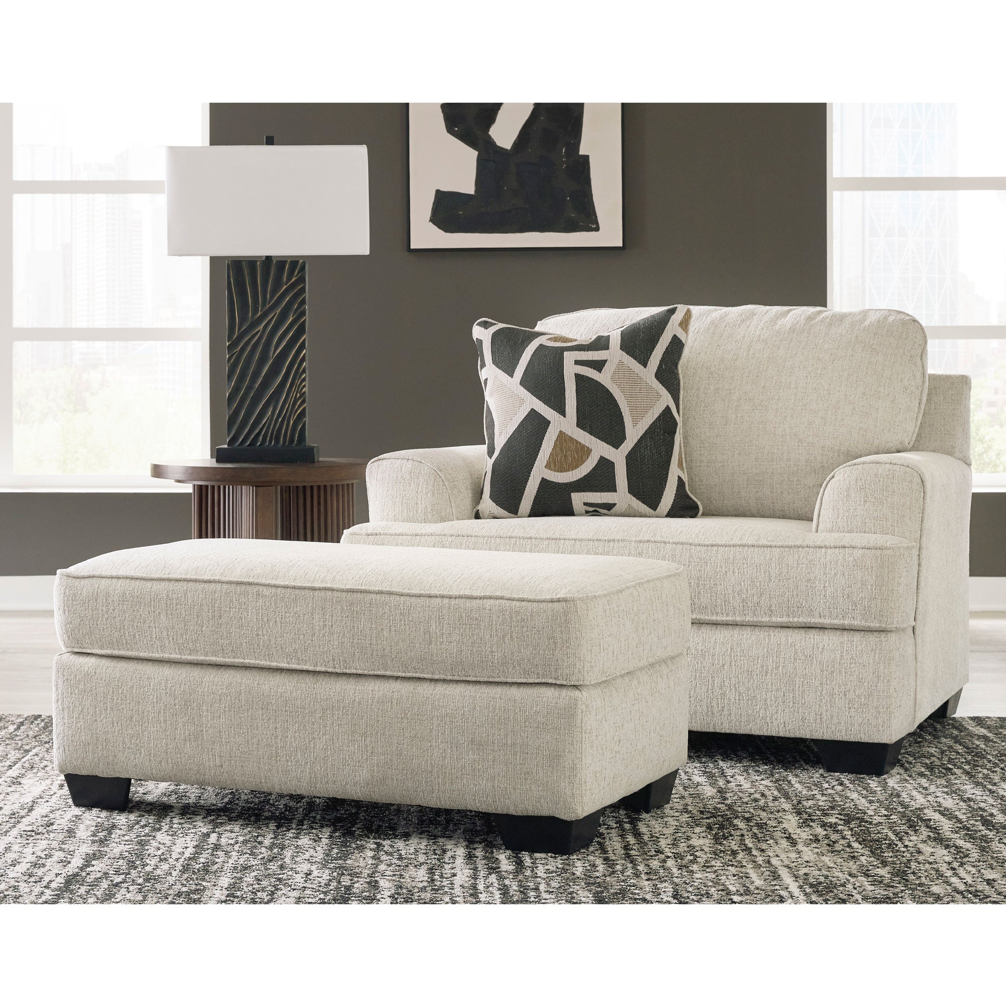 Embrace effortless elegance with this ottoman. Right at home in contemporary settings, the neutral hue easily pairs with your existing color palette. From morning coffee to late-night binge watching, this seating companion keeps you comfortable in chic style.