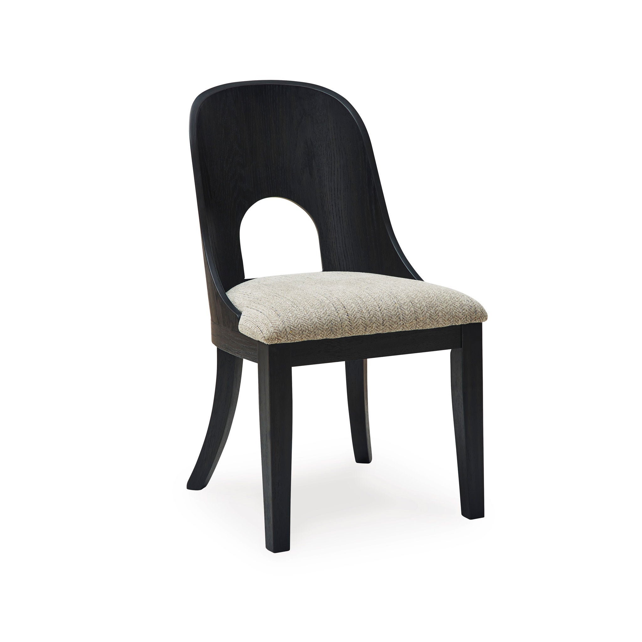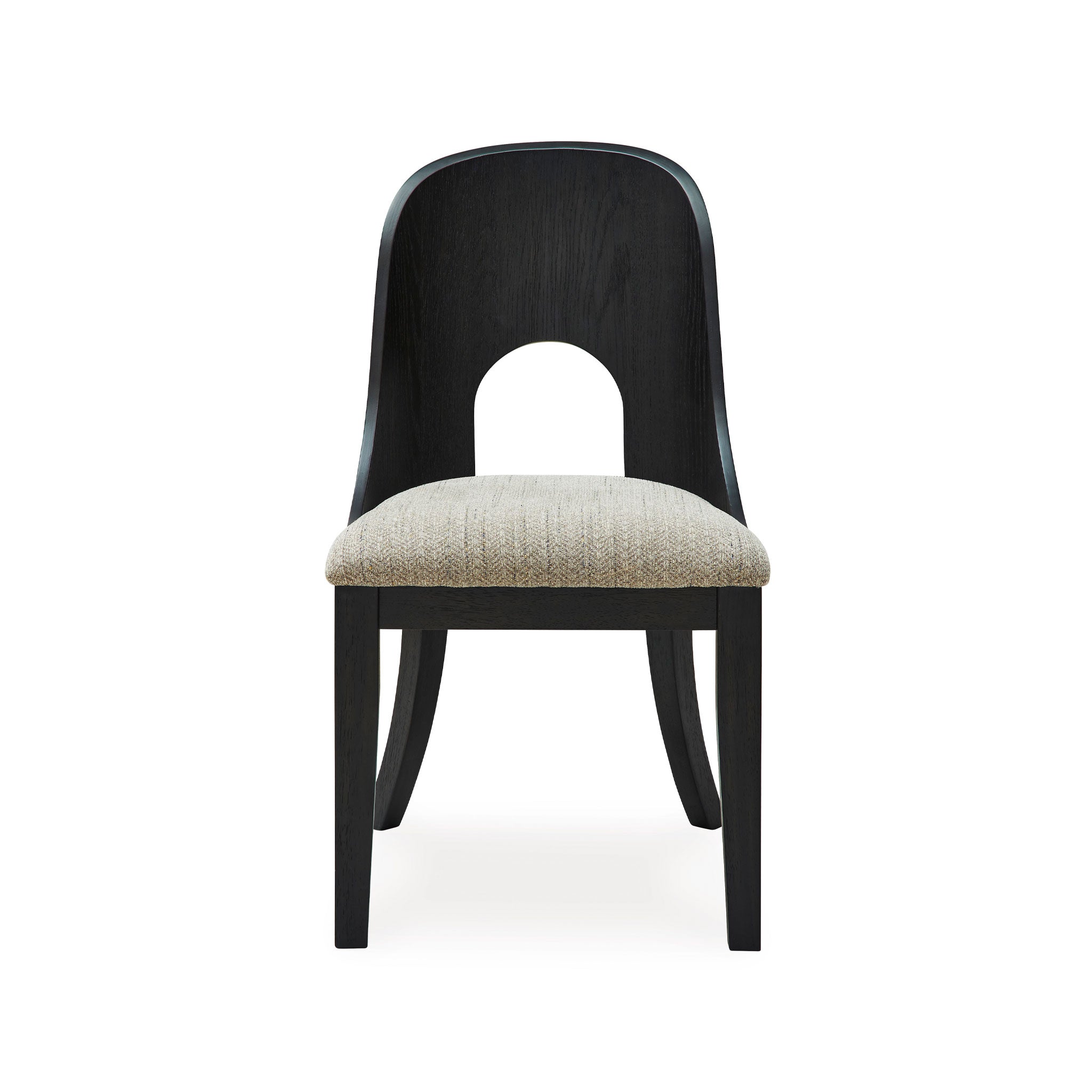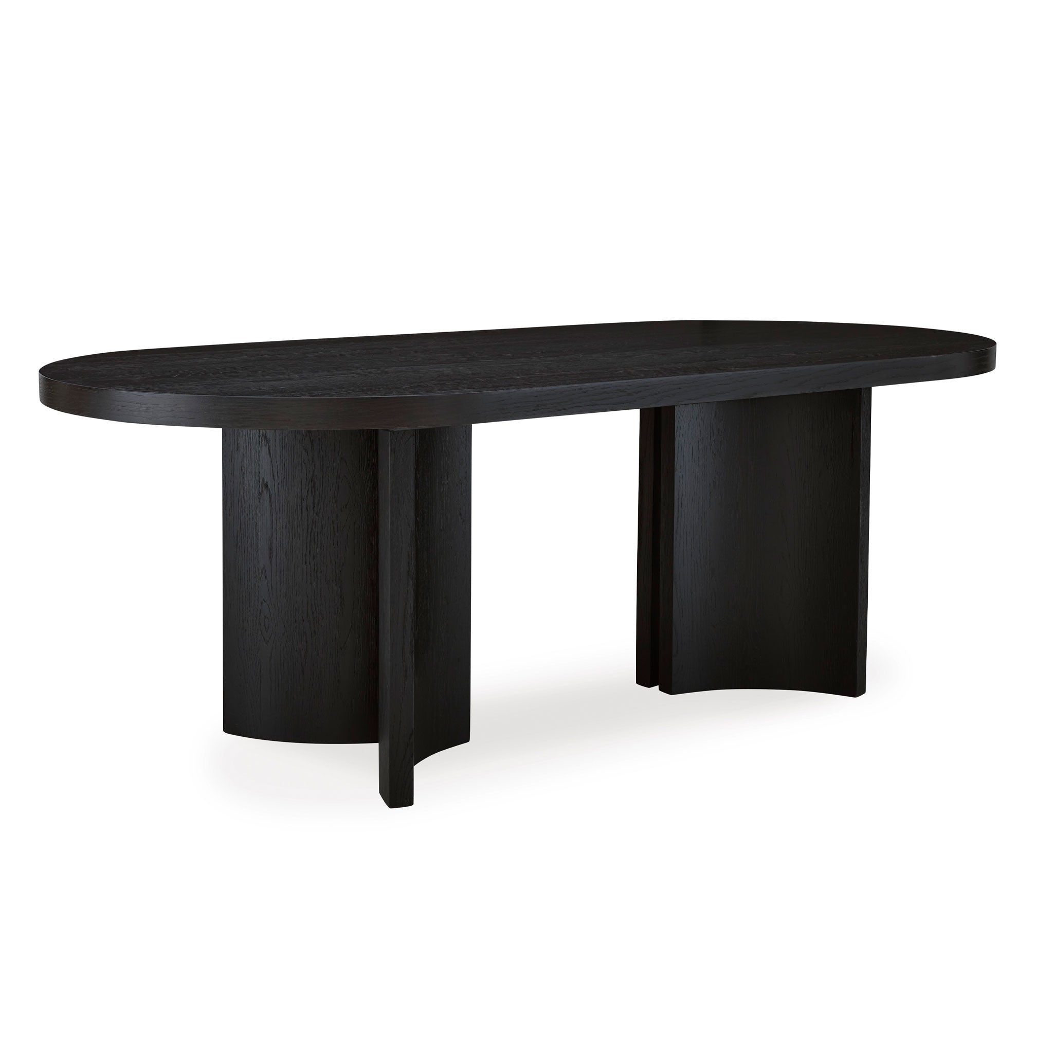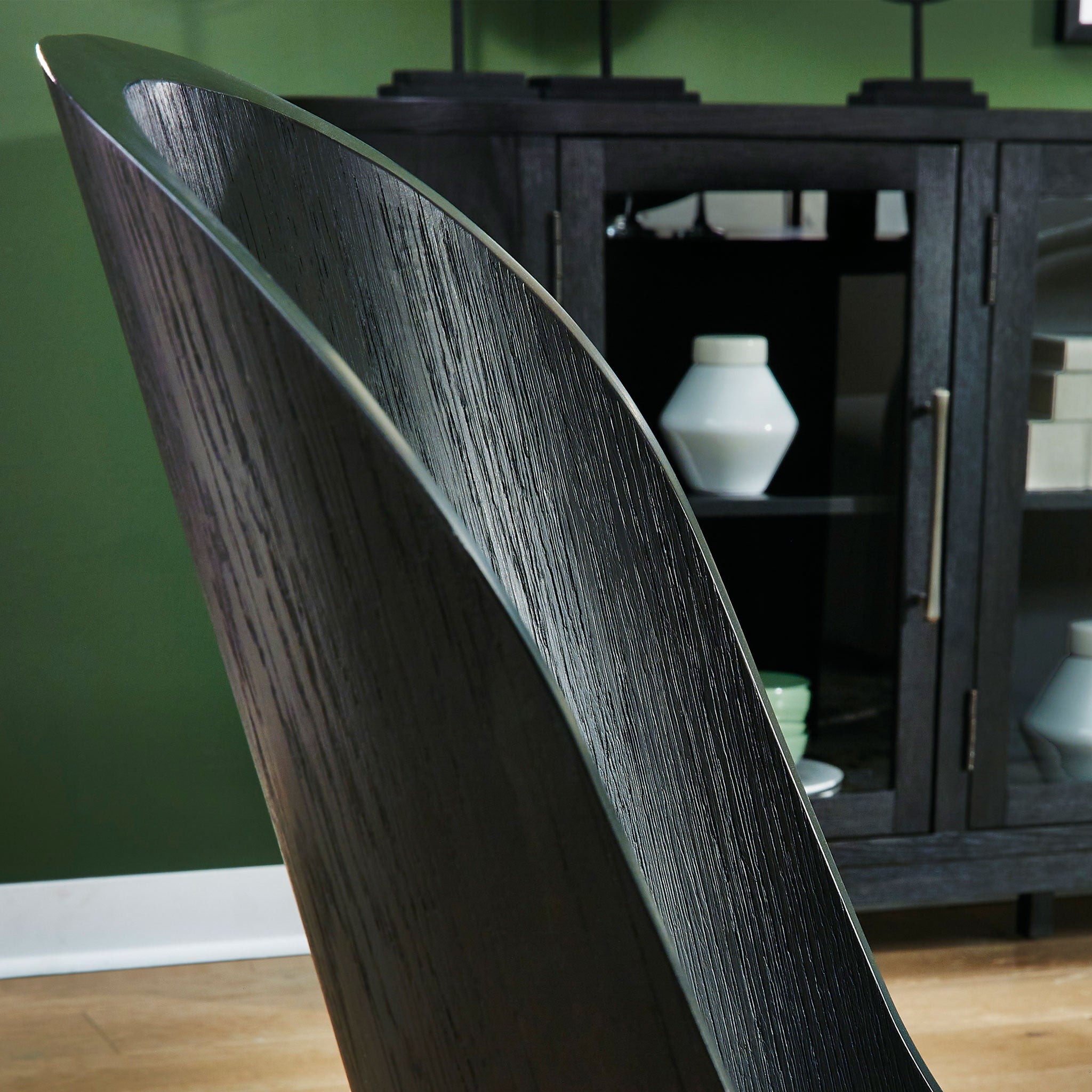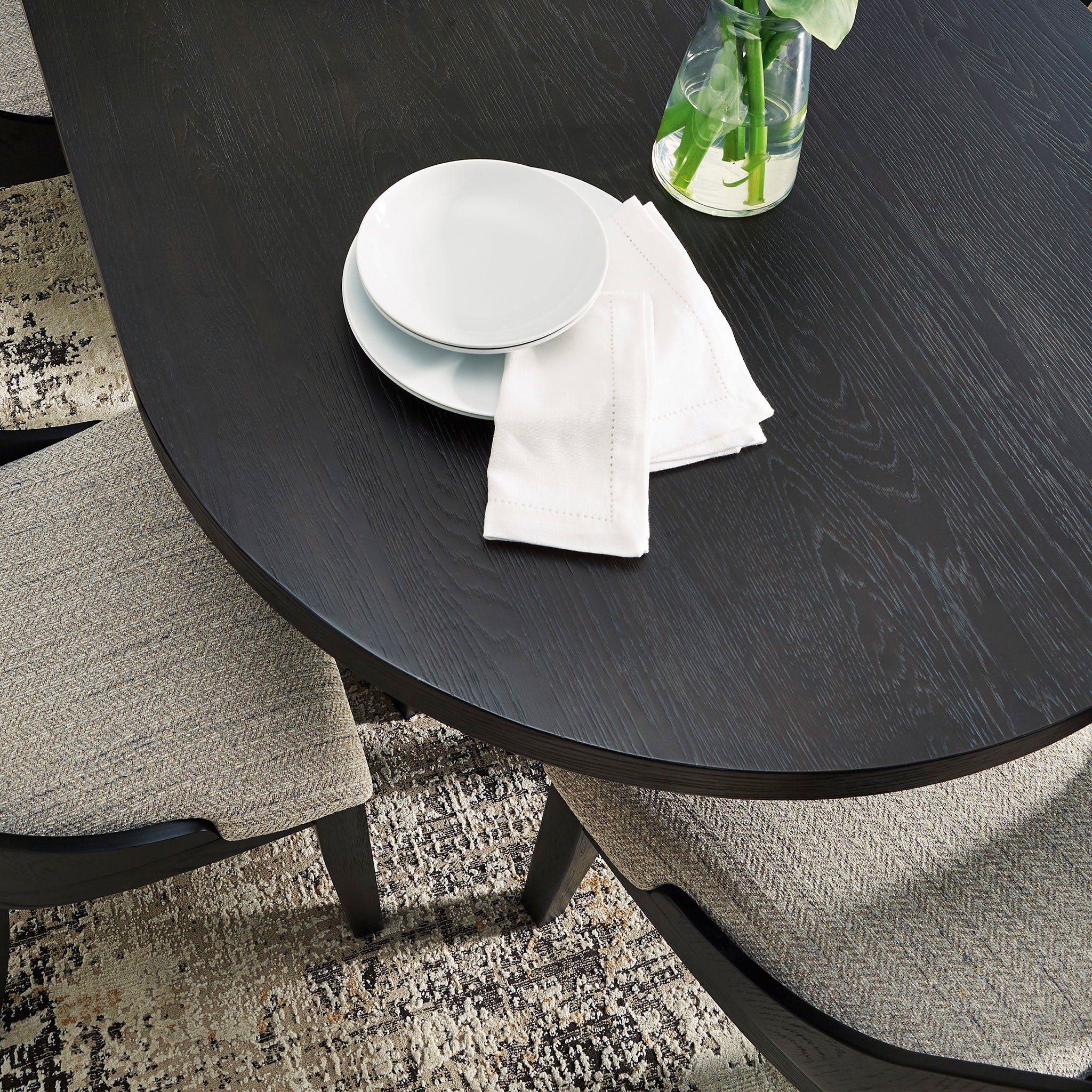 Transform your dining space with the elegant art deco-inspired Rowanbeck Dining set, featuring a striking oval table and a mix of stylish chairs. The table’s curved silhouette, crafted from hardwood solids and oak veneer, is finished in a rich black texture, creating a bold centerpiece for any meal. Seating up to 8, it’s perfect for family gatherings or intimate dinners.