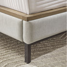 Sleek in its simplicity, this upholstered bed takes a relaxed approach to refinement. The mixed-material design brings a trendy urban-chic feel to bedtime, while its functional features add convenience. A cushioned lay-back headboard makes reading or watching TV in bed all the more comfortable. And with sturdy roll slats included, your mattress is supported without the additional expense of a foundation or box spring.
